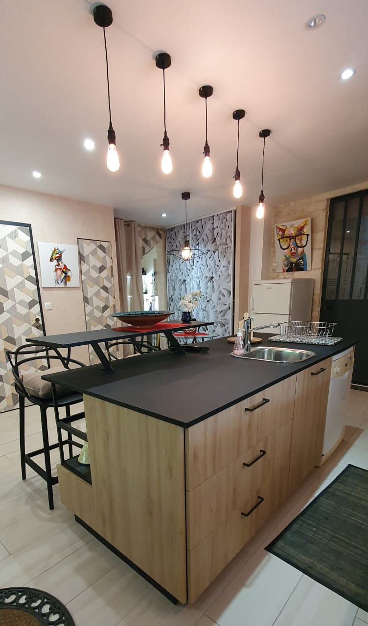 Gîte douillet 3* (3épis) de 40 m2, proximité MAIF, MSA, DARVA, Altima Assurances et Zone Com. de Chauray. 20mn Gare et Centre Vi Logement aménagé à l'étage d'une dépendance au dessus des garages d'une propriété close, accès par escalier extérieur en pierre donnant sur terrasse de 16 m2. Chauffage central, Connexion WIFI, TV écran plat. Cuisine américaine tout équipée (four, LV, réfrigérateur, congél, micron-onde, cafetière Senseo. Lit 160 + équipement BB Salle d'eau avec grande douche italienne.
