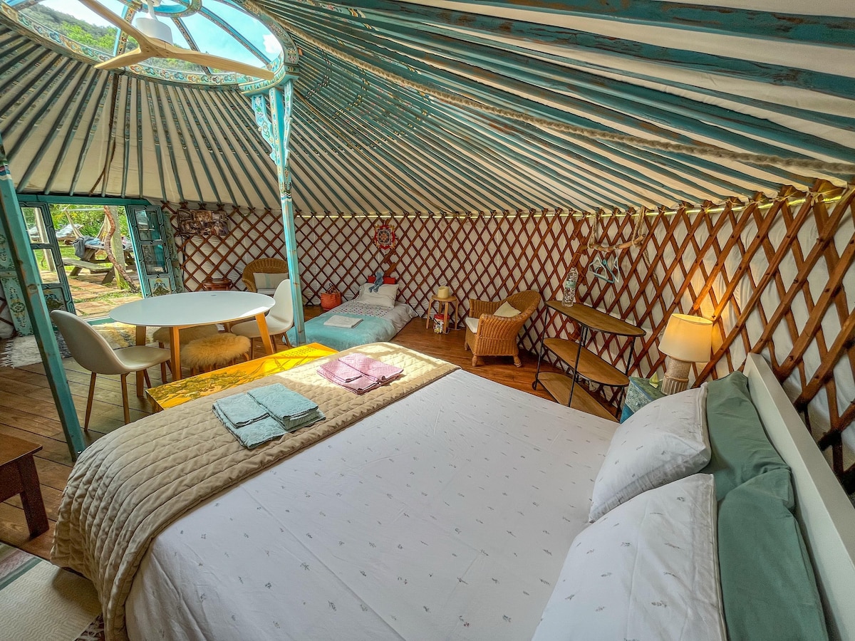 Alojamiento único en el corazón del Empordà, muy cerca de las playas y los pueblos más bonitos de la zona. Apartamento de invitados con entrada independiente desde la calle. Con dos plantas, con cocina, comedor y sala de estar en planta baja, y dormitorio con aseo en planta superior. Jardín, piscina y barbacoa se comparten con la finca principal (propietarios de la finca) El espacio està adecuado para dos adultos. No es adecuado ni para niños ni para bebés.