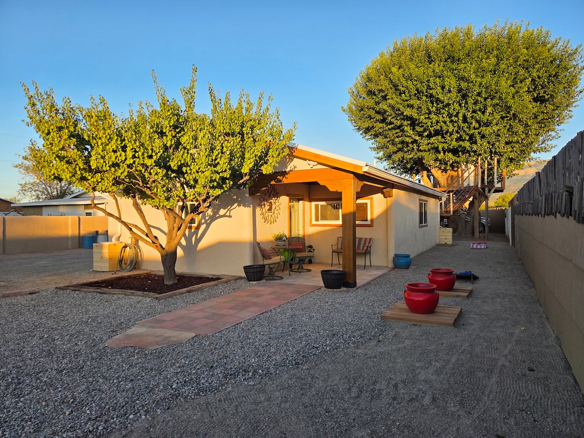 Esta alegre casita aislada de 300 pies cuadrados se encuentra en poco más de un acre de propiedad compartida por un camino privado en North Valley. La ubicación ofrece lo mejor de ambos mundos: espectaculares vistas a la montaña (especialmente al atardecer), acceso al sendero Paseo del Bosque y al bosque de Cottonwood a lo largo del río Grande, todo a poca distancia en coche de todo lo que ofrece Albuquerque.