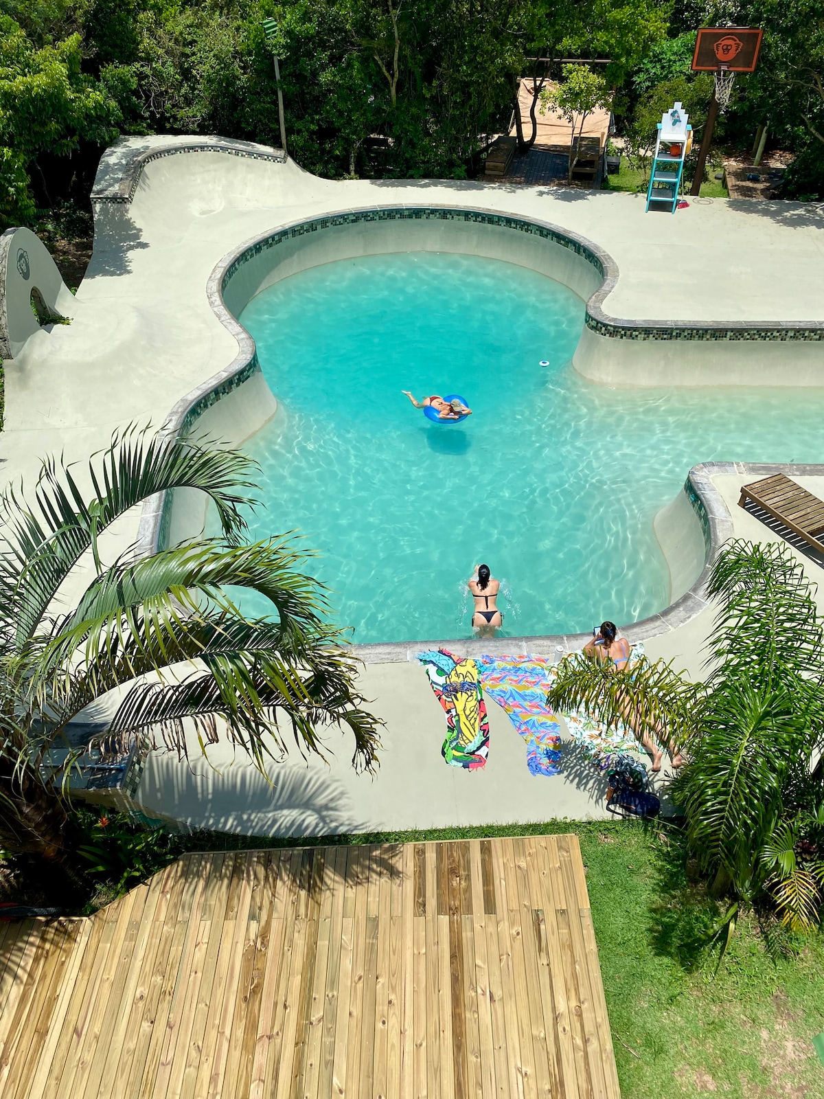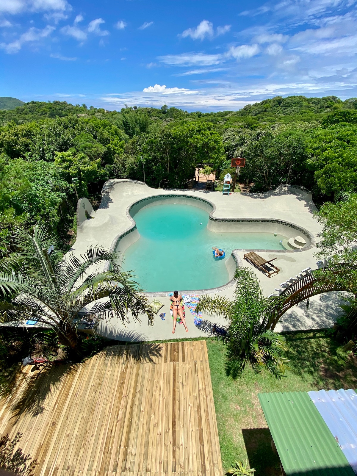 Selva de Floripa, verdadero paraíso privado, ubicado en la playa de Mozambique en Florianópolis. Despierta con el amanecer, observa el impresionante cielo y comienza el día con las muchas actividades que ofrecemos: sendero privado, sendero de skate profesional, estudio de arte/tatuaje, Jungle Bar, Jungle Surf School, Sandboarding, Skate School y yoga.
