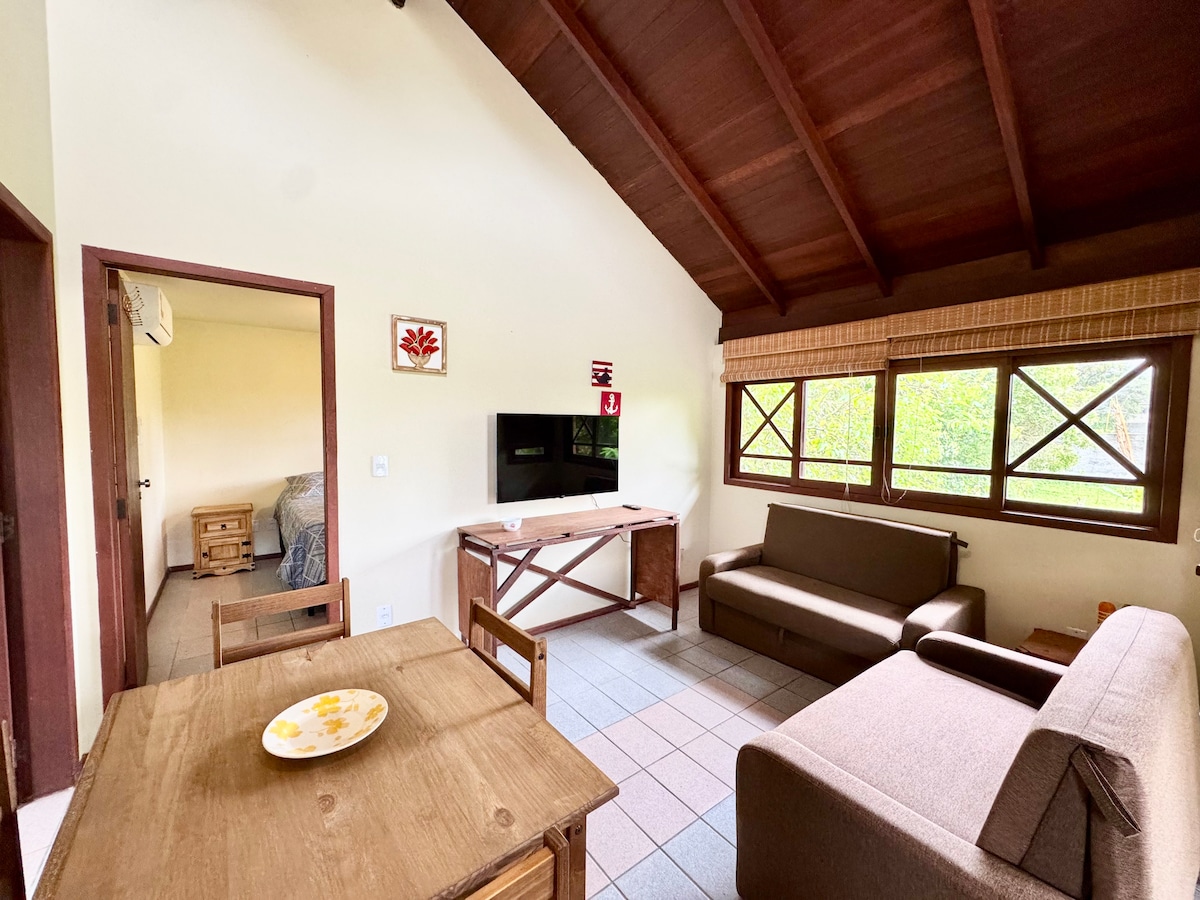 Cabaña con acceso directo y exclusivo a la playa, a 30 pasos de la arena. Tiene una vista panorámica sobre la bahía de Pântano do Sul, acogedora, bien decorada y con todas las comodidades en un ambiente tranquilo. Cómoda para 2 adultos + 2 en la sala (ideal para niños). - Cocina completa, - Aire acondicionado, - Ropa de cama y baño, - Parrilla, - Sillas de playa y sombrilla, - Pet friendly, con jardín cerrado, - Gazebo privado con vista a la playa, - Wifi (400mb).