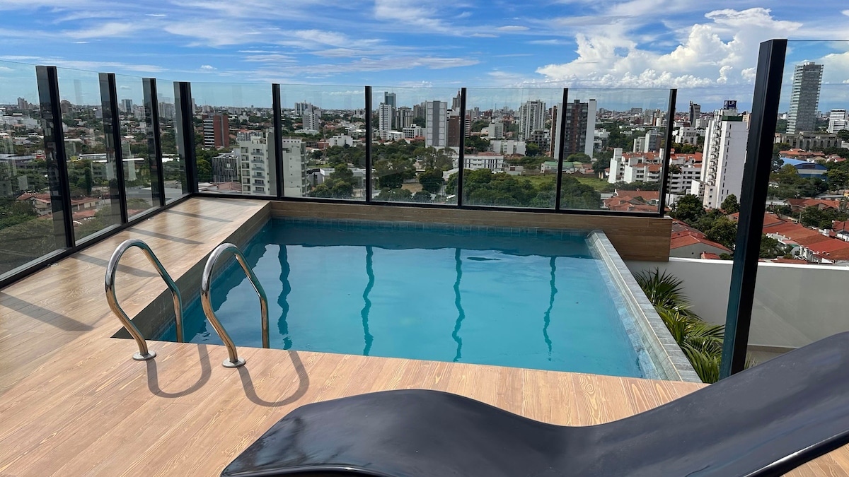 Disfruta de un moderno departamento en el corazón de Equipetrol, en el piso 15 con una vista panorámica increíble de Santa Cruz. El edificio ofrece áreas sociales de lujo y una exclusiva cancha privada de pádel, el deporte en tendencia. El departamento está totalmente equipado con mobiliario de lujo y todas las comodidades necesarias, pensado en cada detalle para viajes de negocios o placer.