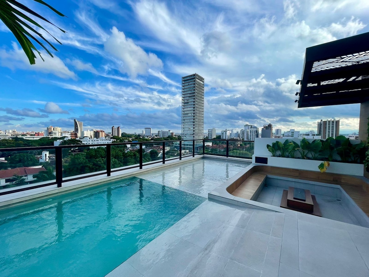 Despertarás en un Studio totalmente equipado que combina comodidad hogareña y confort. Entrarás a un estilo de vida sofisticado; cada detalle ha sido cuidadosamente diseñado para satisfacer altas expectativas. Tendrás todas las comodidades. ¿Relajarse? Sumérgete en la piscina. ¿Ejercicio? ¡Hay Gym! ¿Trabajo? Podrás continuar tu rutina en las múltiples zonas sociales que ofrecen el escenario perfecto.¿Divertirte? Podrás jugar billar y usar la sala común ¡Reserva y descubre este Studio!