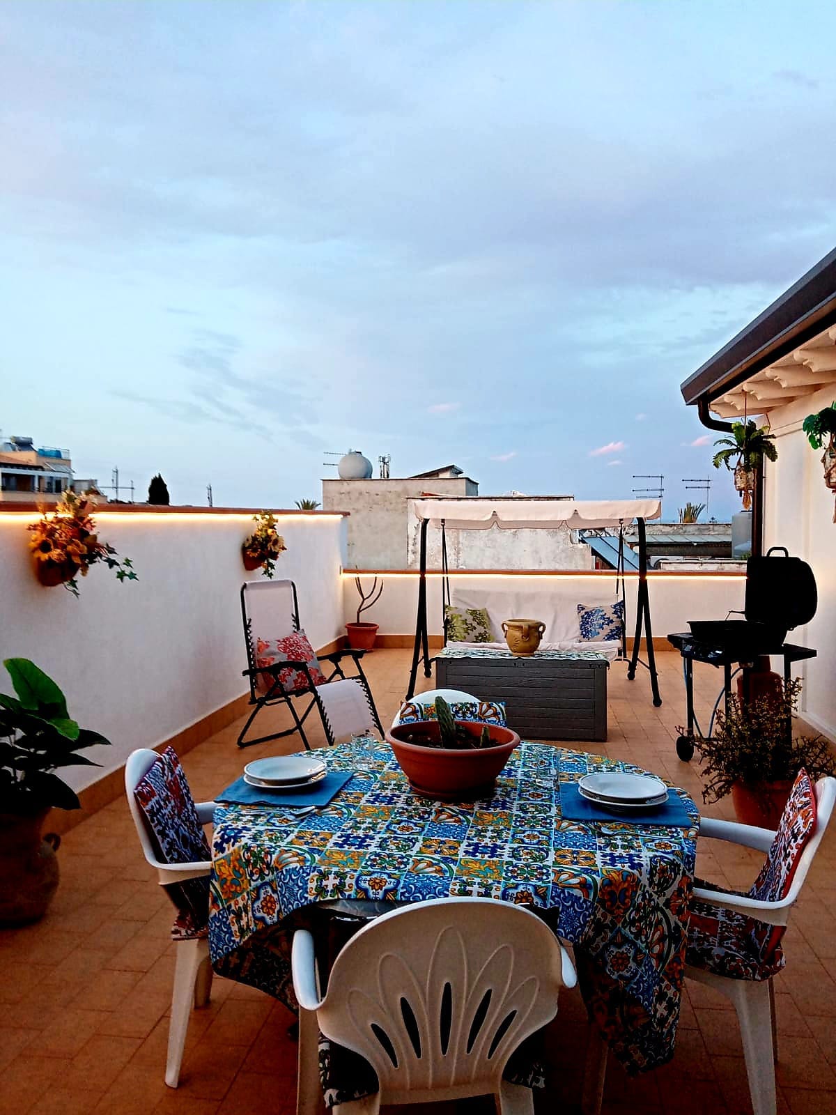 Ático luminoso en el corazón del centro histórico de Palermo, en el quinto piso de un edificio de principios del siglo XX con ascensor. El apartamento se caracteriza por una gran terraza privada de más de 100 metros cuadrados desde la que los huéspedes pueden disfrutar de las vistas sobre los tejados del barrio de Kalsa y el mar del renovado puerto de Palermo. El espacio exterior es el lugar ideal para quienes deseen relajarse al aire libre, tomar el sol en la terraza, almorzar al aire libre o hacer una barbacoa bajo las estrellas.