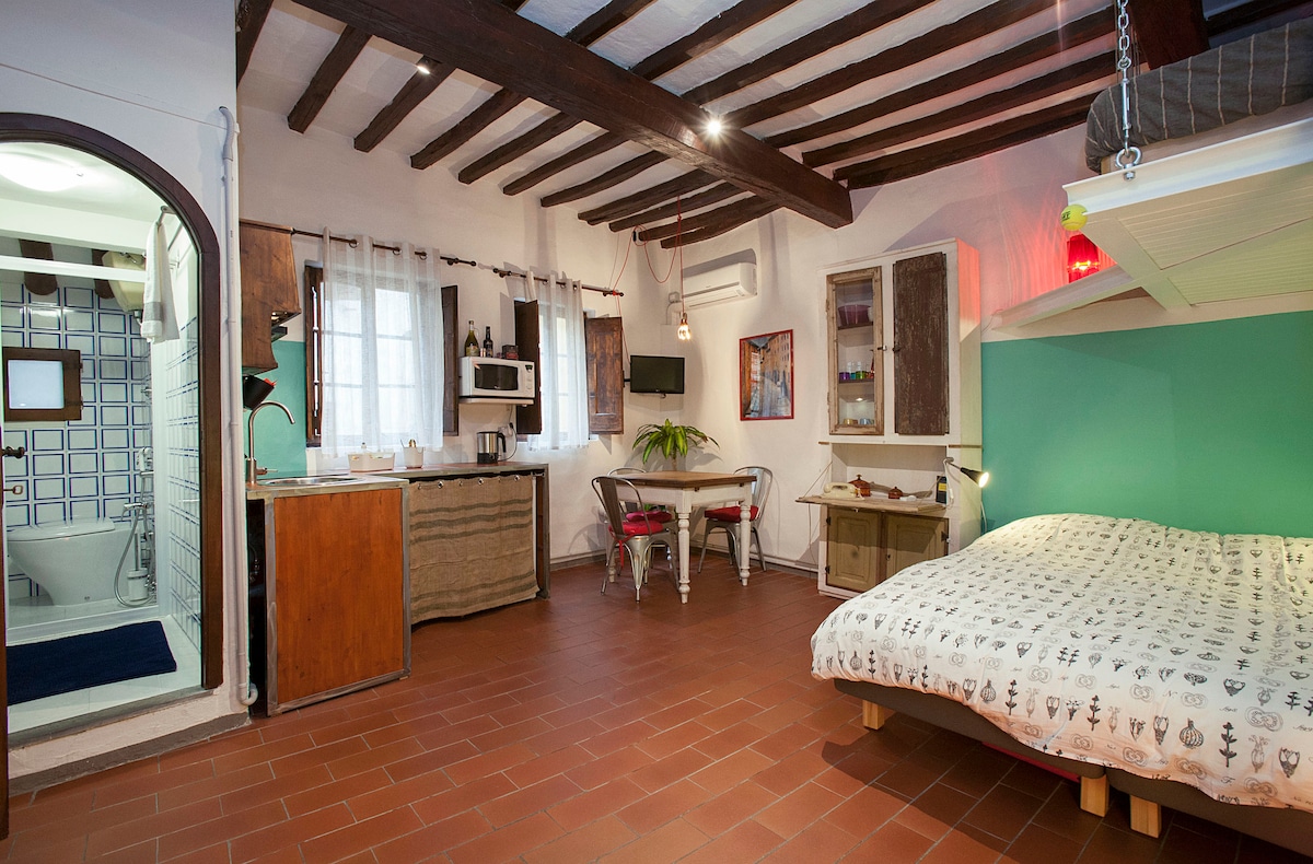 Estarás en el corazón de Florencia, entre el Palazzo Pitti y el Ponte Vecchio, en un barrio animado, rodeado de tiendas de artesanía, cafeterías y restaurantes. Justo al lado de los flujos más turísticos, ¡un estudio sin muebles de Ikea!