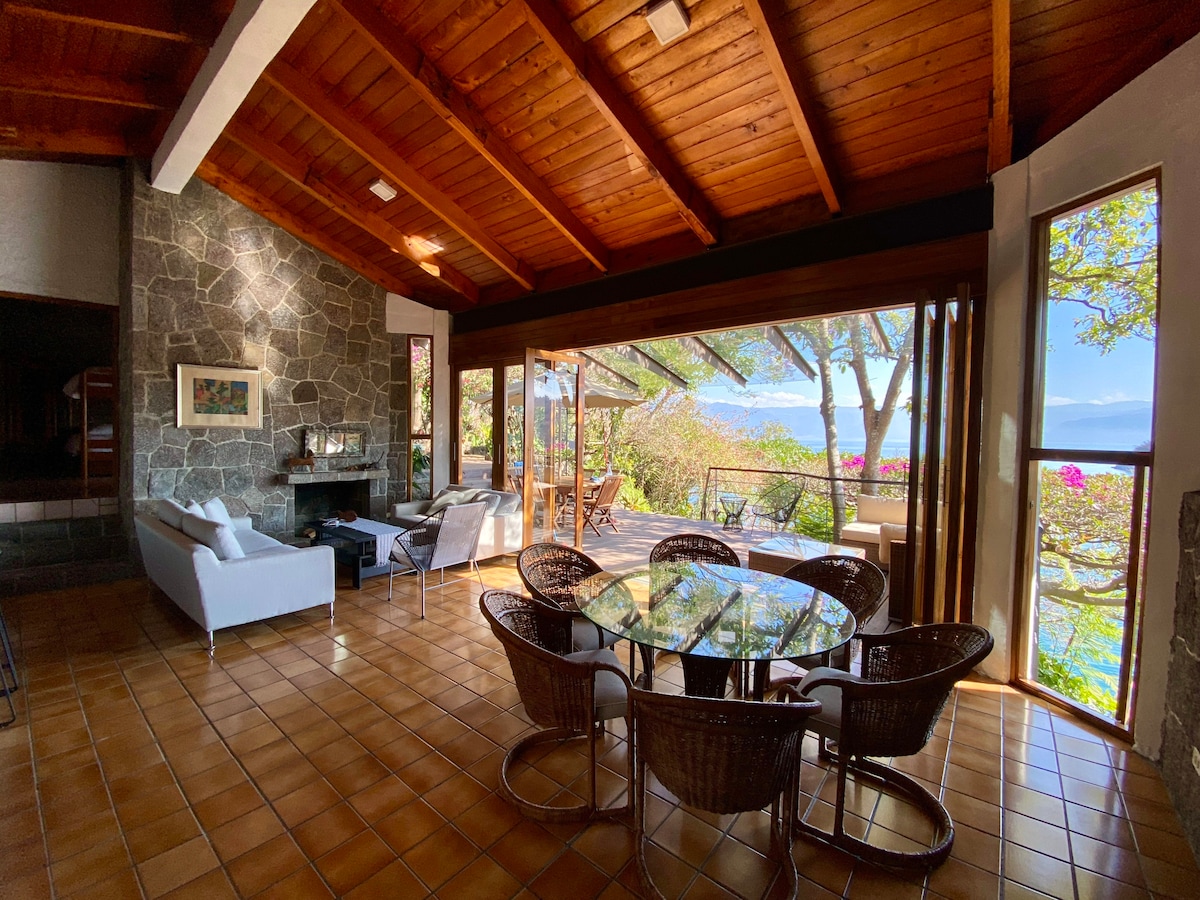 Inspired by the architectural gems of Antigua, this lakefront home features a large central courtyard with traditional wood columns, fountain, outdoor dining room, and living room. The house features two identical master suites. Each with wrap-around balconies. Two other bedrooms have queen beds. The house boasts the best of both worlds modern amenities in a stylish traditional setting, all within the beauty of gardens and breath-taking views of Lake Atitlan.