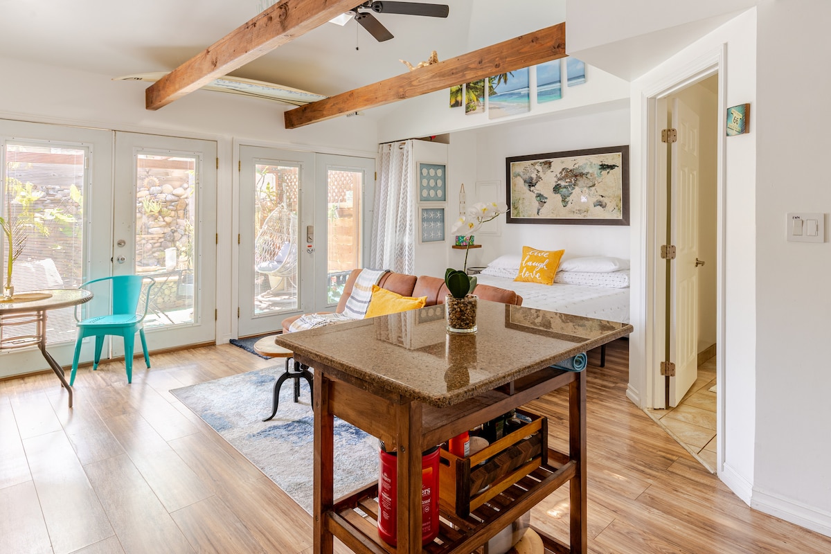 Bienvenido a tu bungalow estudio en Venice Beach. A 6 minutos caminando de la playa, a 10 minutos caminando del famoso Abbot Kinney, nombrado el bloque más genial de Estados Unidos por GQ. Puntuación a☞ pie 89 (playa, cafeterías, restaurantes, tiendas, etc.) 20 minutos → LAX ✈ → Canales a 2 minutos a pie ✾ Siente la brisa del océano y relájate bajo las estrellas mientras disfrutas de un paseo nocturno por los canales de Venecia, a solo 2 minutos a pie. Nunca querrás dejar este bungalow de playa en el corazón del mejor barrio de Venice Beach.
