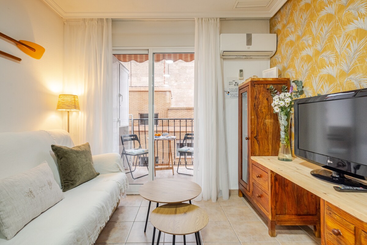 Apartamento muy luminoso orientado al este-oeste, con un dormitorio doble y una sala de estar con Smart TV, sofá cama y pequeña oficina. Segunda planta sin ascensor. Aire acondicionado reversible y persianas enrollables. Gran balcón con vistas parciales al mar, ¡perfecto para descansar! Barrio popular Santiago Bernabéu-Varadero, cerca de las playas, el puerto y las tiendas. Plazas de aparcamiento reservadas para los residentes, aunque las plazas son limitadas. Ideal para teletrabajar con wifi de alta velocidad y para pasar las vacaciones al sol.