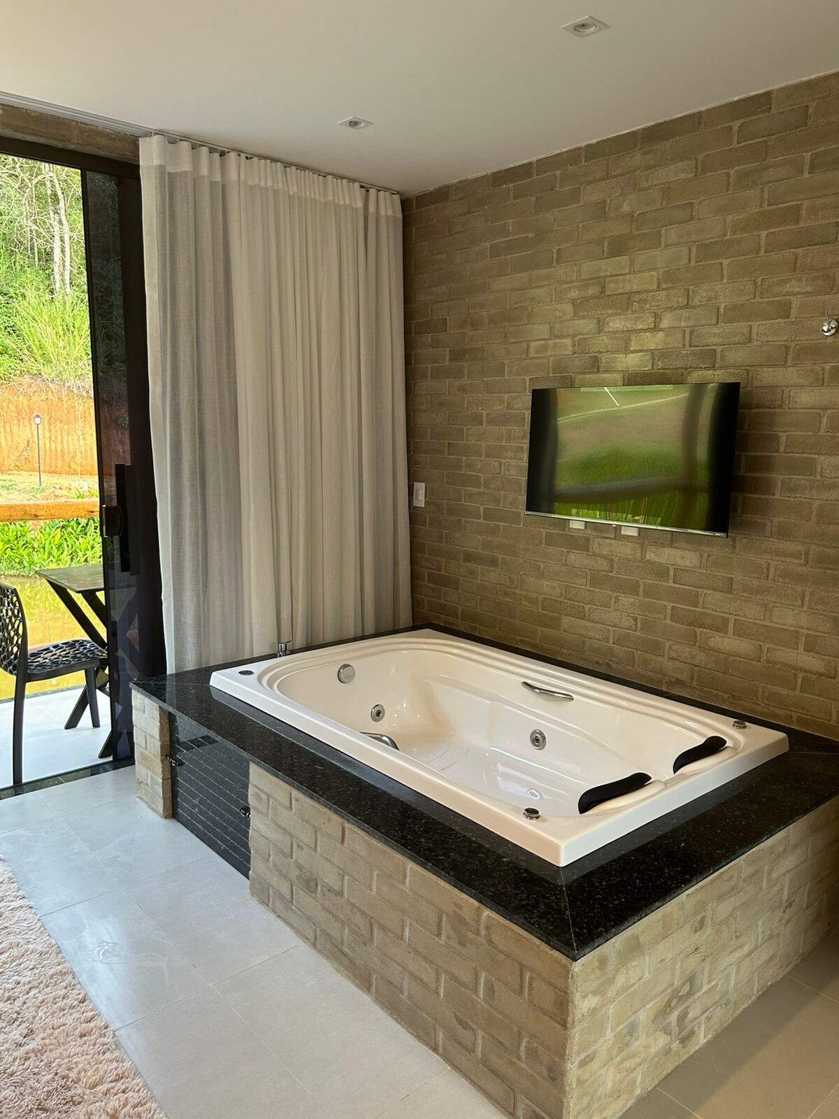 Exclusivo para una pareja. Disfruta de una experiencia única en medio de la naturaleza en Chalé Lírio. Un refugio romántico y exclusivo con arquitectura acogedora, iluminación íntima y una bañera de hidromasaje con vistas a la vegetación. Exclusivo para parejas que buscan descanso, privacidad y momentos inolvidables. Aquí, cada detalle se pensó para reducir la velocidad y disfrutar del ahora.