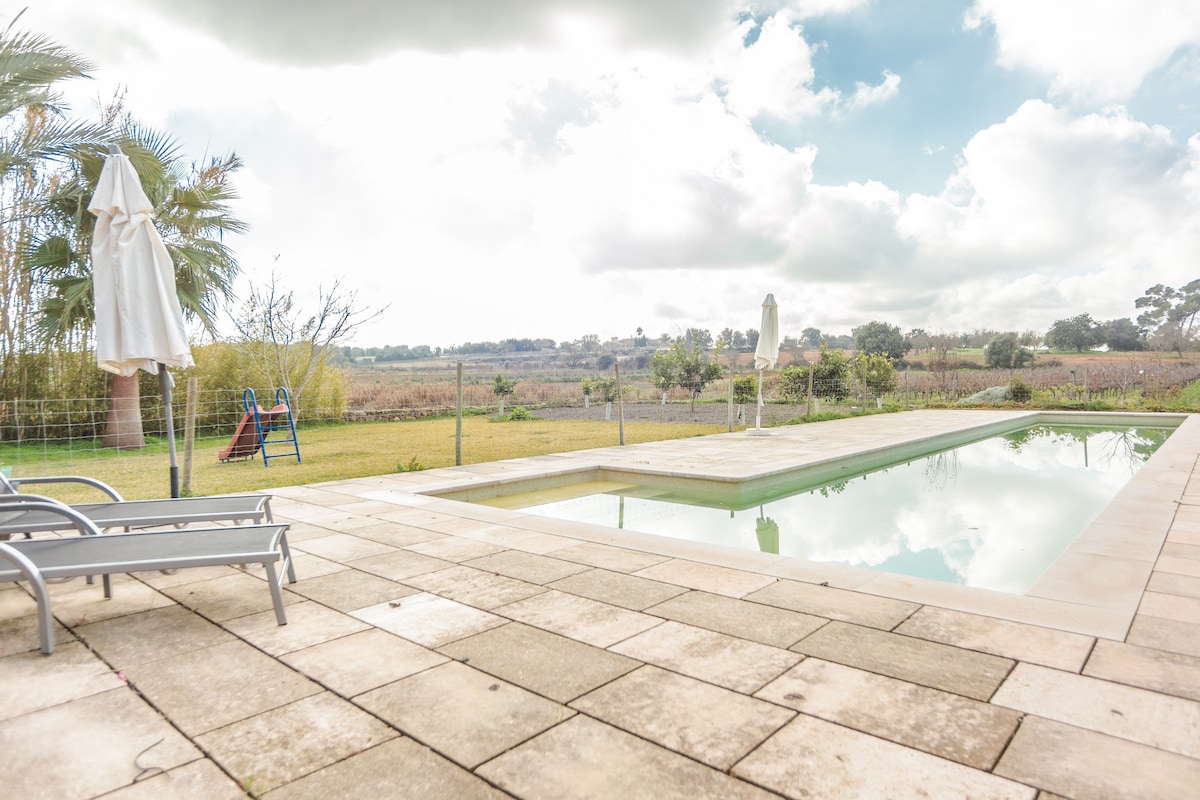 Finca tradicional mallorquina con huerto en el centro de Mallorca, a 30 m. de cualquier playa de la isla. Ideal para parejas con hijos que quieran disfrutar de la isla pero que busquen algo de relax desde en cetro de la isla.