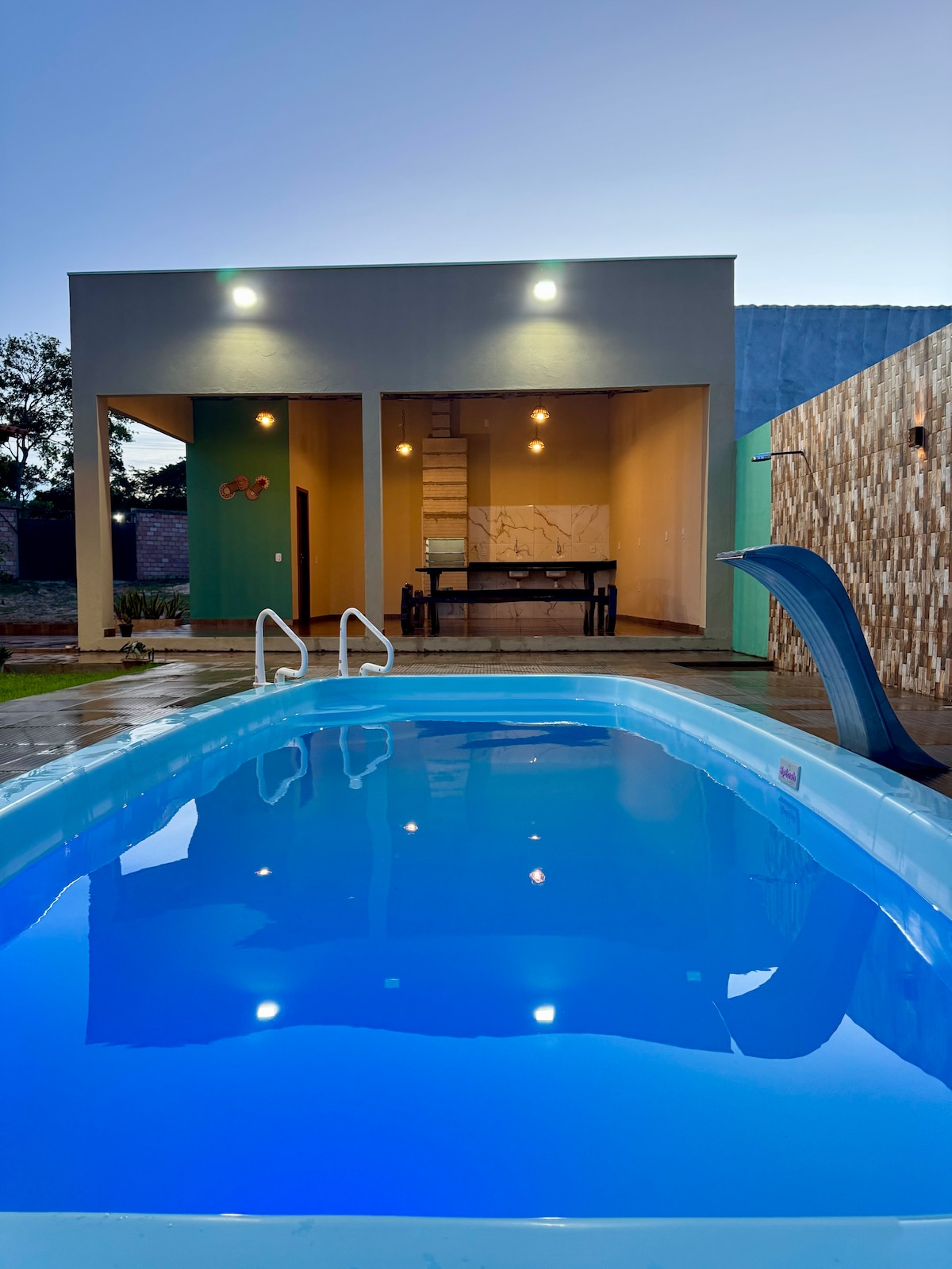 Nuestra casa de vacaciones de nueva construcción ofrece comodidad y practicidad. Hay 3 habitaciones con aire acondicionado, sala de estar con TV de alta definición, además de Internet de alta velocidad. La cocina está completa, con utensilios y una freidora de aire. Para el ocio, contamos con una zona de barbacoa con parrilla prefabricada junto a la zona de servicio. Los baños son grandes, modernos y con duchas térmicas. Perfecto para aquellos que buscan comodidad y momentos especiales con la familia o con amigos.