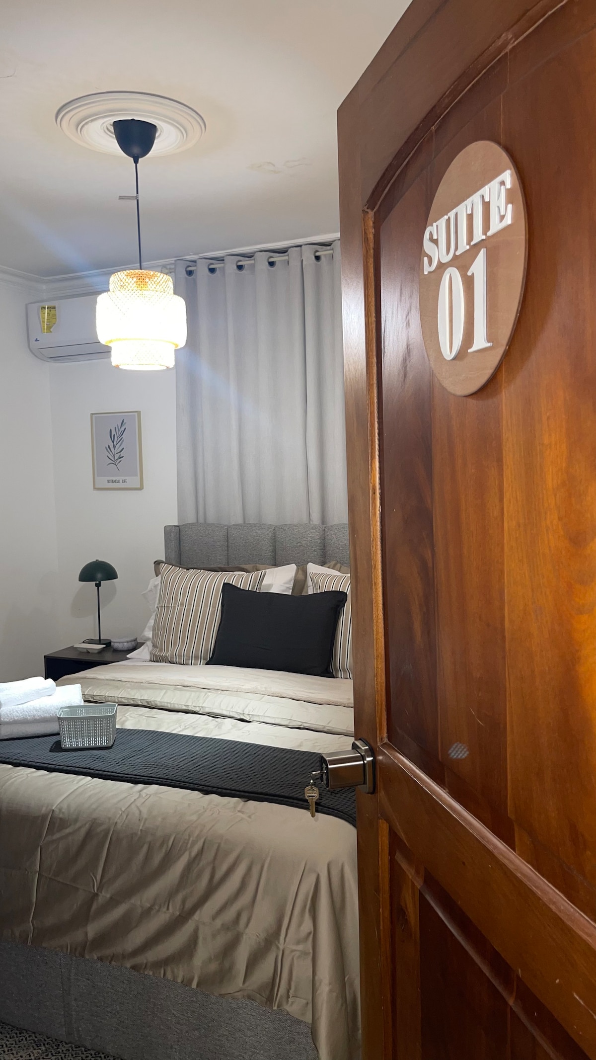 Mi hostal cuenta con tres habitaciones, las cuales son alquiladas individualmente. La Suite uno y dos comparten el baño y la Suite tres cuenta con baño privado. En el área de recepción tenemos una sala de estar donde puedes pasar un buen rato. Contamos con los servicios y comodidades que necesitas para hacer de tu estadía una experiencia sumamente placentera. (El alojamiento no incluye cocina)