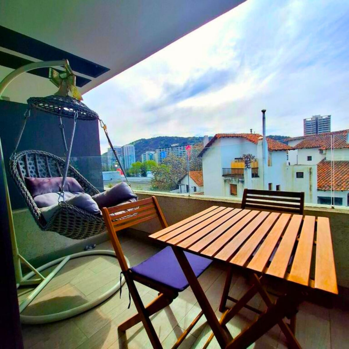 Único y acogedor Cama King, AC/calefacción, terraza, TV 360°, WIFI. Estacionamiento gratuito cubierto, frente al ascensor. Quinchos y piscina con vista panorámica hacia la cordillera de Los Andes. Sala de pool, co-work, gimnasio equipado y más. ¡Ubicación fantástica! Para los amantes de la nieve, arriendo de equipos, buses de acercamiento y tours a menos de 400mts. Cuenta con entrada a autopistas, locomoción colectiva, supermercados, restaurantes, bencineras, farmacia 24 hrs, parques y malls.