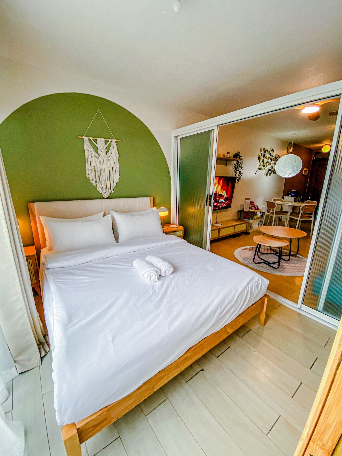 Disfruta del ambiente de fusión moderno-vintage de mi alojamiento. En el interior, te sentirás como si estuvieras en Nueva York o en cualquier ciudad occidental, lo que es una experiencia agradable para unas excelentes vacaciones. El enorme televisor Android de 65 pulgadas tiene Netflix, mientras que Internet es de 200 Mbps de velocidad, ideal para transmitir películas sin problemas. Está convenientemente ubicado en Pasig, con una amplia variedad de restaurantes, tiendas de comestibles y tiendas cercanas.