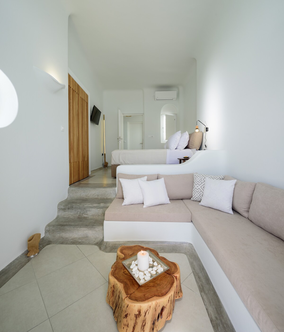 Disfruta de tu propio apartamento privado en Santorini en nuestro boutique Santorinn Suites, ubicado en el corazón de Fira. Este apartamento actualizado en el primer piso combina la comodidad moderna con el encanto tradicional griego, el refugio perfecto para familias, grupos de amigos o parejas que viajan juntos. Barrio tranquilo en el centro de la ciudad de Fira, el apartamento está a pocos pasos del estacionamiento gratuito y a poca distancia a pie de restaurantes, tiendas, vida nocturna y el famoso mirador de Caldera, ¡a solo 1 minuto a pie!