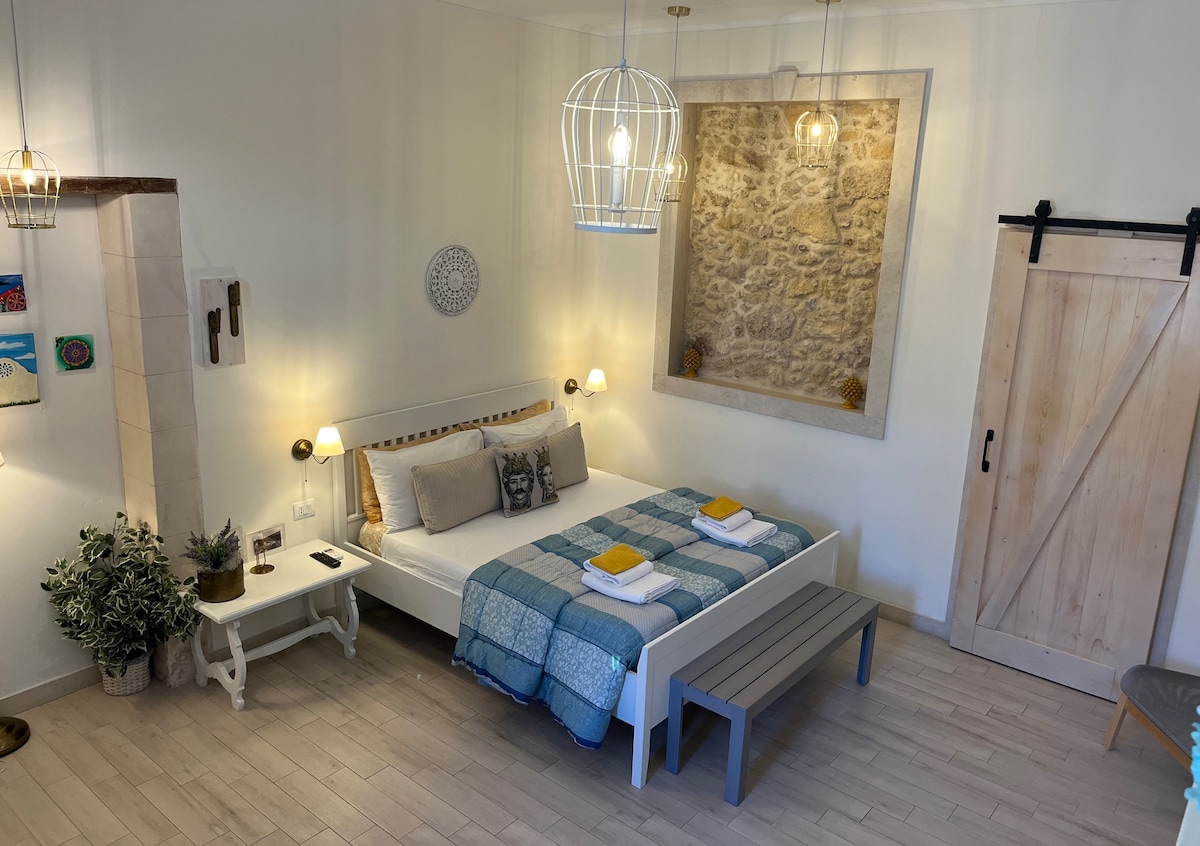 Dionisio 6 es un apartamento elegante, acogedor y cálido en la planta baja, ubicado en el barrio judío de «La Giudecca», en el corazón de Ortigia, a solo 50 metros del mar. Nuestro loft ha sido completamente renovado en 2021 a través de una cuidadosa restauración conservadora utilizando materiales de la más alta calidad con el fin de respetar las características del antiguo edificio en el que se encuentra. La funcionalidad y el diseño se han mezclado con la antigüedad de la estructura arquitectónica.