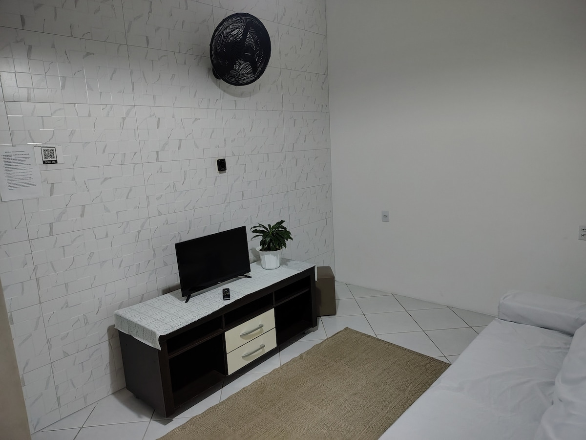 Situado en un condominio residencial familiar, tranquilo listo para establecerse. La estadía incluye: - cocina; - lavadora; tanque; - habitación con cama doble; armario; tabla de planchar; - baño con ducha. Reglas: - horario de silencio (de las 23:00 a las 08:00); - perros o gatos prohibidos; - prohibido fumar; - apagar las lámparas innecesarias; y - cerrar ventanas y puertas en el ambiente donde el aire acondicionado está encendido.