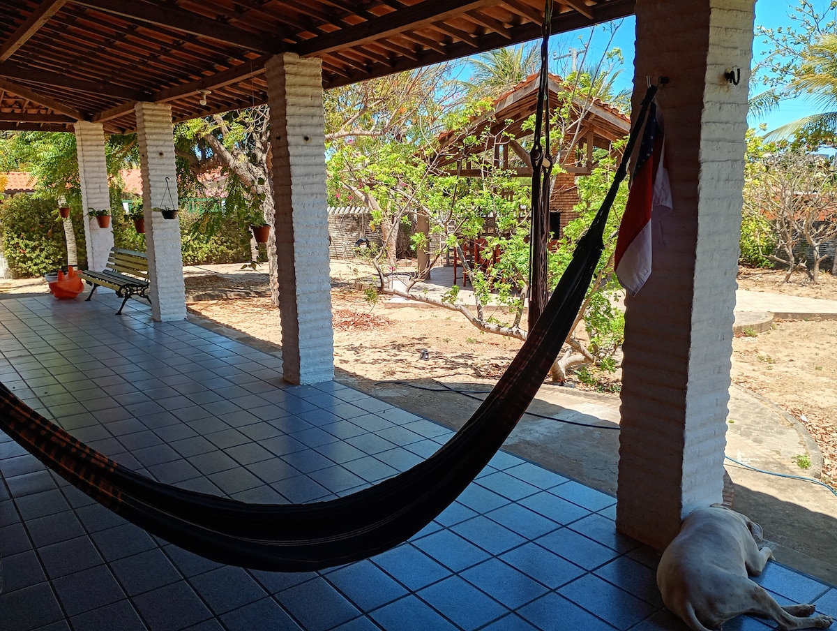 This place is been specially created for people and kiters that like to live the Brazilian experience. For a good price you can have rooms at the bungalow and barraka with shared 4 bathrooms. We also have toilets and exterior showers if needed. The perfect place for kite lovers that want to come for short or long periods without expending much money and having fantastic times. You will share spaces like kitchen, garden and pool with the people of the house. But the space is very big and magic !