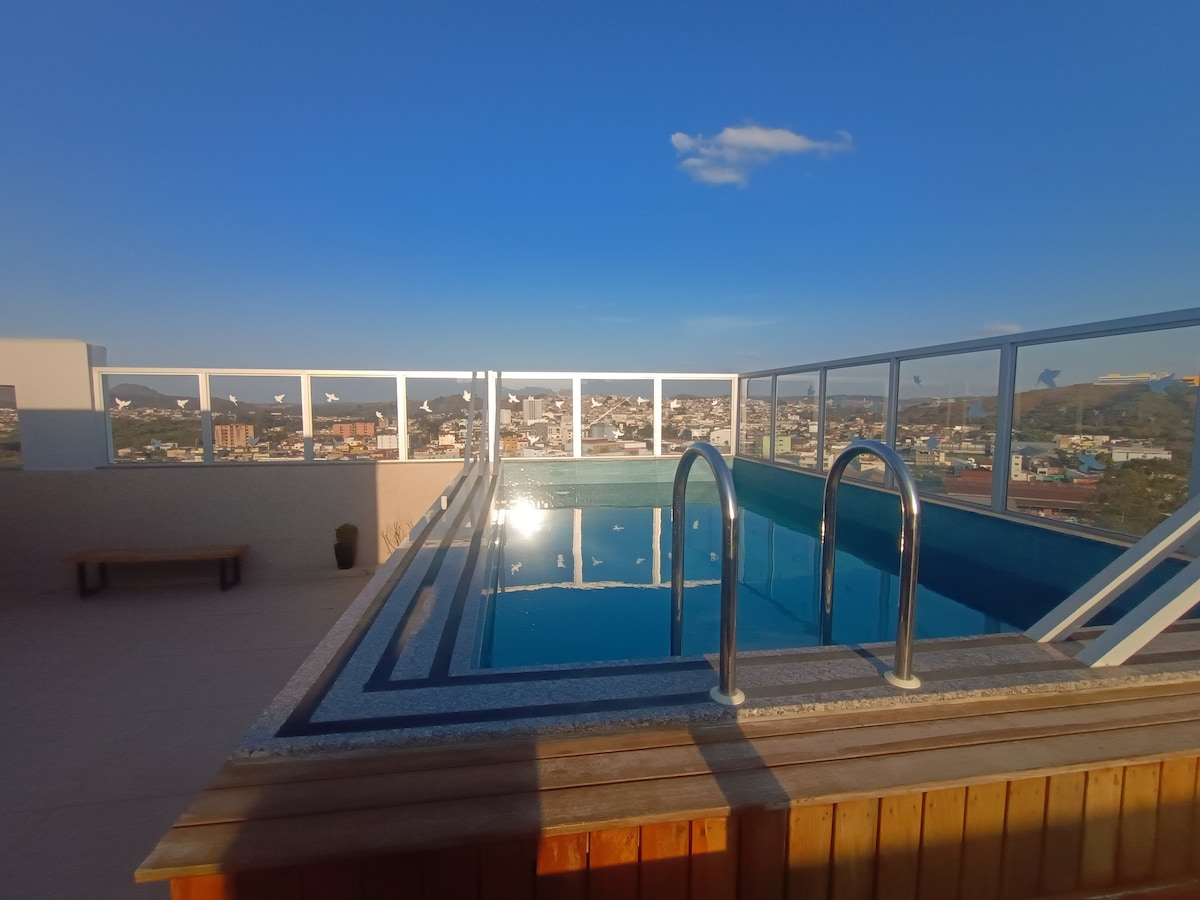 Un apartamento entero de 110 m2, situado en São João De Rei, cerca del complejo Águas Santas (Tiradentes), el espacio es ideal para aquellos que quieren disfrutar de las ciudades históricas o simplemente relajarse, disfrutando de nuestra bañera de hidromasaje doble, piscina climatizada por energía solar, vistas a la cordillera de São José, dormitorio de 35 m2 con cama tamaño king y balcones con hamacas. El apartamento está ubicado en el segundo piso de la casa, tiene entrada independiente y privacidad. La piscina es la única zona compartida del espacio.