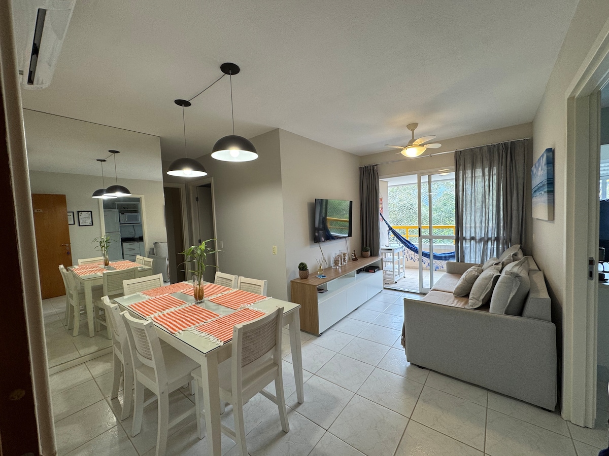 Este espaçoso apartamento de 84m² com ampla sala e 2 quartos, está a duas quadras da praia e oferece uma vista deslumbrante de um trecho da Mata Atlântica, proporcionando um ambiente calmo e relaxante. Sobre os quartos, um deles é suíte com cama americana Stearn & Foster, todas com colchões de molas garantem conforto total. Cozinha em quartzo Calacata equipada com eletrodomésticos novos e de alta qualidade, é perfeito para famílias exigentes que buscam praticidade e requinte.