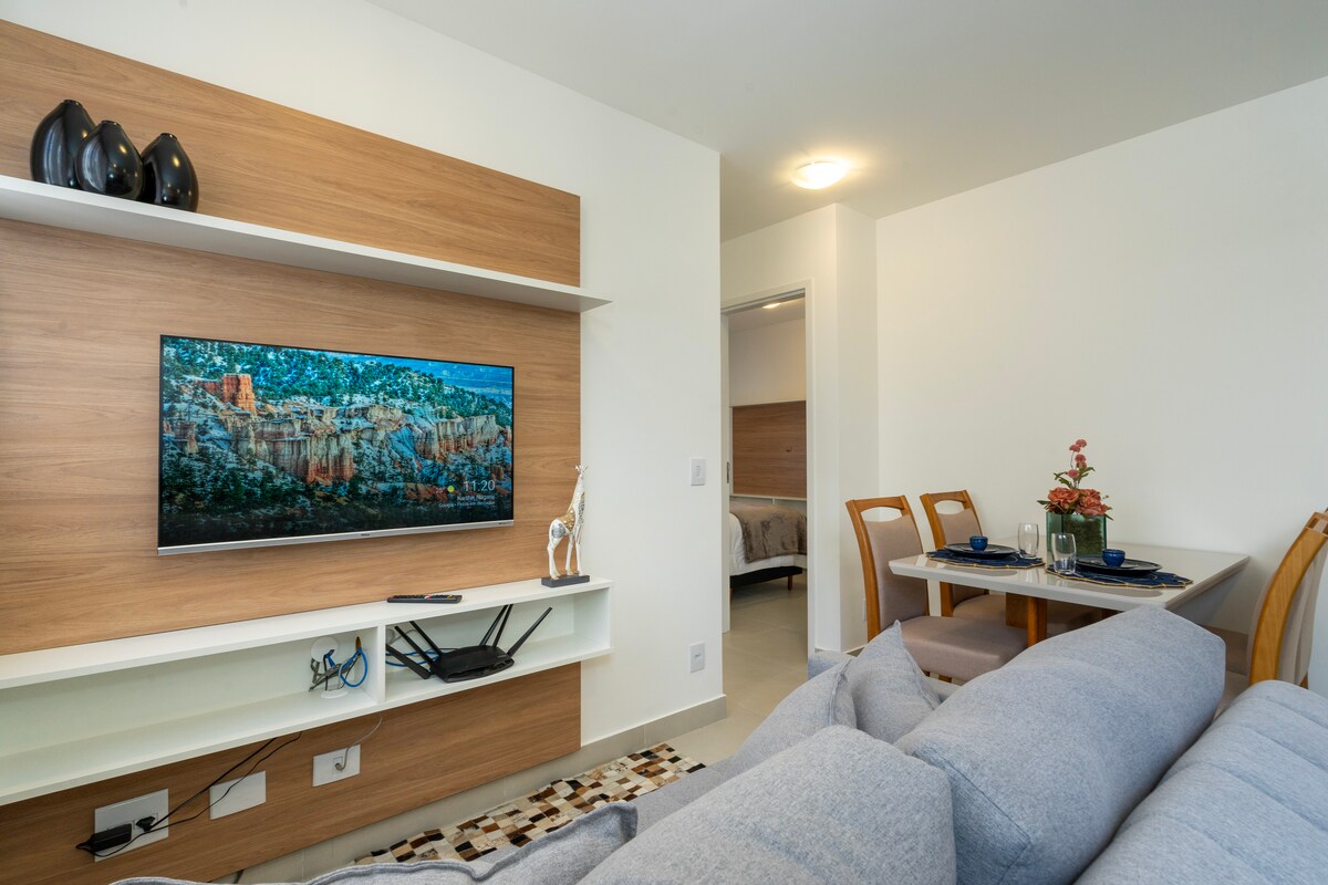 Hermoso apartamento, bien ubicado, muy completo, con aire acondicionado en el dormitorio, Smart TV de 40', ropa de cama y toallas incluidas en el alojamiento, apartamento con internet Wifi súper rápido (hasta 700mb de velocidad). Nuevo condominio con piscina, lavandería colectiva, coworking y zona gourmet. Garaje rotativo en el sótano (ver disponibilidad, plazas limitadas) Cerca: 600m - Metro Conceição 700m - Sede de Itaú Unibanco 800m - Metro Jabaquara 2 km - São Paulo Expo 4 km - Aeropuerto de Congonhas