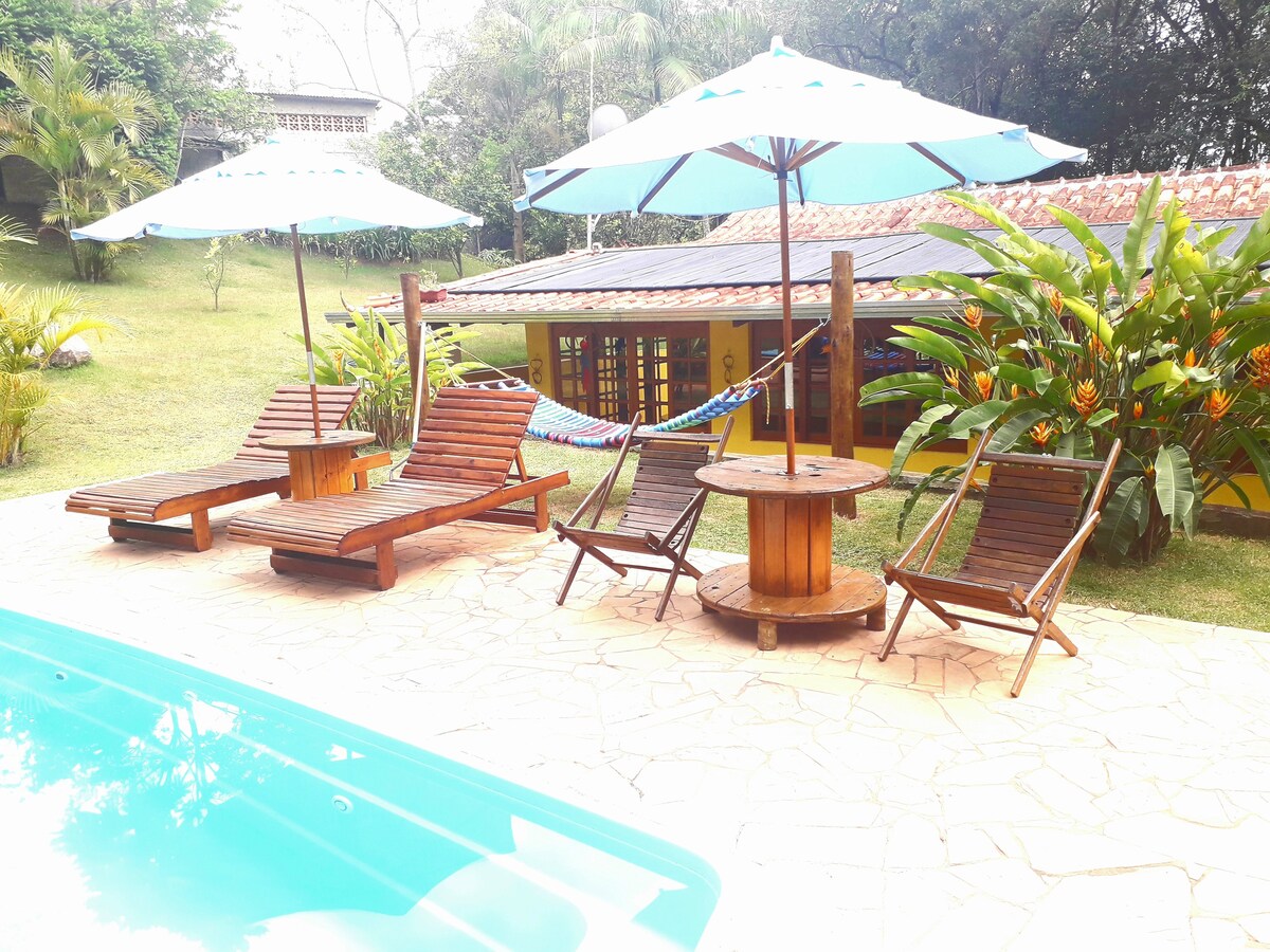 La diversión o el descanso están garantizados en nuestra casa de campo a pie en la presa de Ibiúna ubicada en Mirim Açú, condominio familiar cerrado, con vigilancia las 24 horas, casa con ocio completo, rodeada de bosque reservado, árboles frutales, hortalizas, orquídeas y la presencia de aves y animales silvestres. Casa de campo amplia y ventilada ideal para familias que quieran disfrutar de fines de semana, feriados y vacaciones.