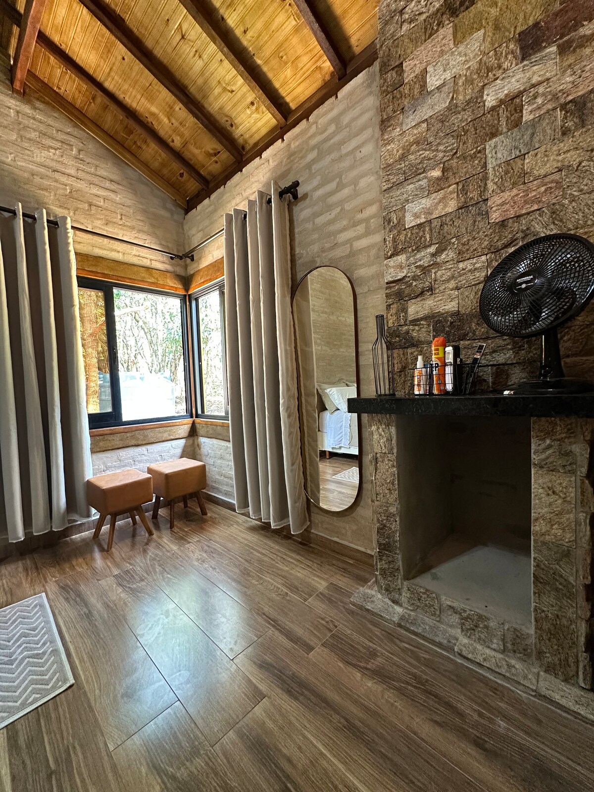 ✨ Chalet en São Thomé das Letras, a solo 3 km del centro de la ciudad y en la ruta de la cascada. Acogedor y rodeado de naturaleza. Chalet con chimenea en el dormitorio. Ofrecemos ropa de cama, toallas y secador de pelo. Cocina completa con utensilios, freidora de aire, cafetera y sandwichera. Disfruta de la zona al aire libre con una hamaca y barbacoa para momentos al aire libre. ¡Ven y experimenta la energía única de São Thomé! 🌿🔥🛌