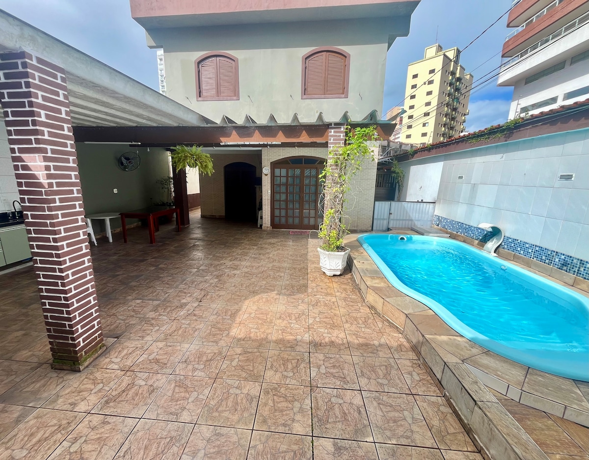 Casa Sol & Sal: Ven a disfrutar de la casa con piscina climatizada en Guilhermina, Praia Grande/SP, a 600 m de la playa. Perfecto para momentos de relajación y ocio. Grande (244 m²) y decorada, 4 dormitorios, 3 baños (uno con bañera y 2 duchas), tiene capacidad para 15 huéspedes. Aire acondicionado, wifi, televisores inteligentes en las habitaciones, salas de estar y zona de barbacoa. Mesa de billar, futbolín, ping-pong y muchos juegos. Máquina de hielo, freidora de aire, dispensador de agua refrigerada. Garaje para 3 autos. Se admiten mascotas (1 mascota) y cuna.