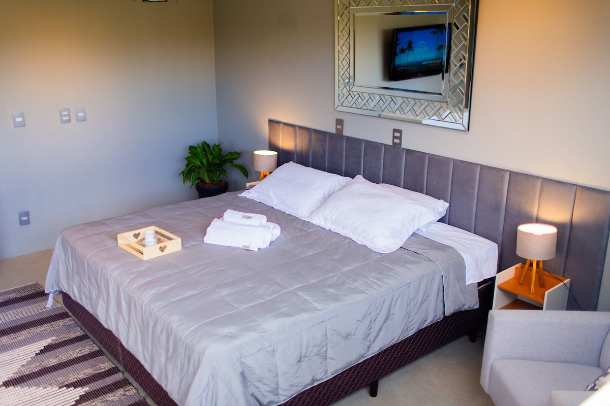 Nuestra suite ha sido recientemente renovada, ofreciendo más comodidad y bienestar a nuestros huéspedes. Se encuentra en uno de los condominios más bonitos de la ciudad de Canela. Condominio cerrado, con lugares maravillosos para disfrutar. Lagos, cisnes a los que se puede dar de comer, rutas de senderismo, miradores, parque infantil con amplio espacio verde. ¡Aquí vivimos buenos momentos! ¡Te esperamos a ti y a tu familia! ¡Ven a vivir momentos felices en nuestros apartamentos!