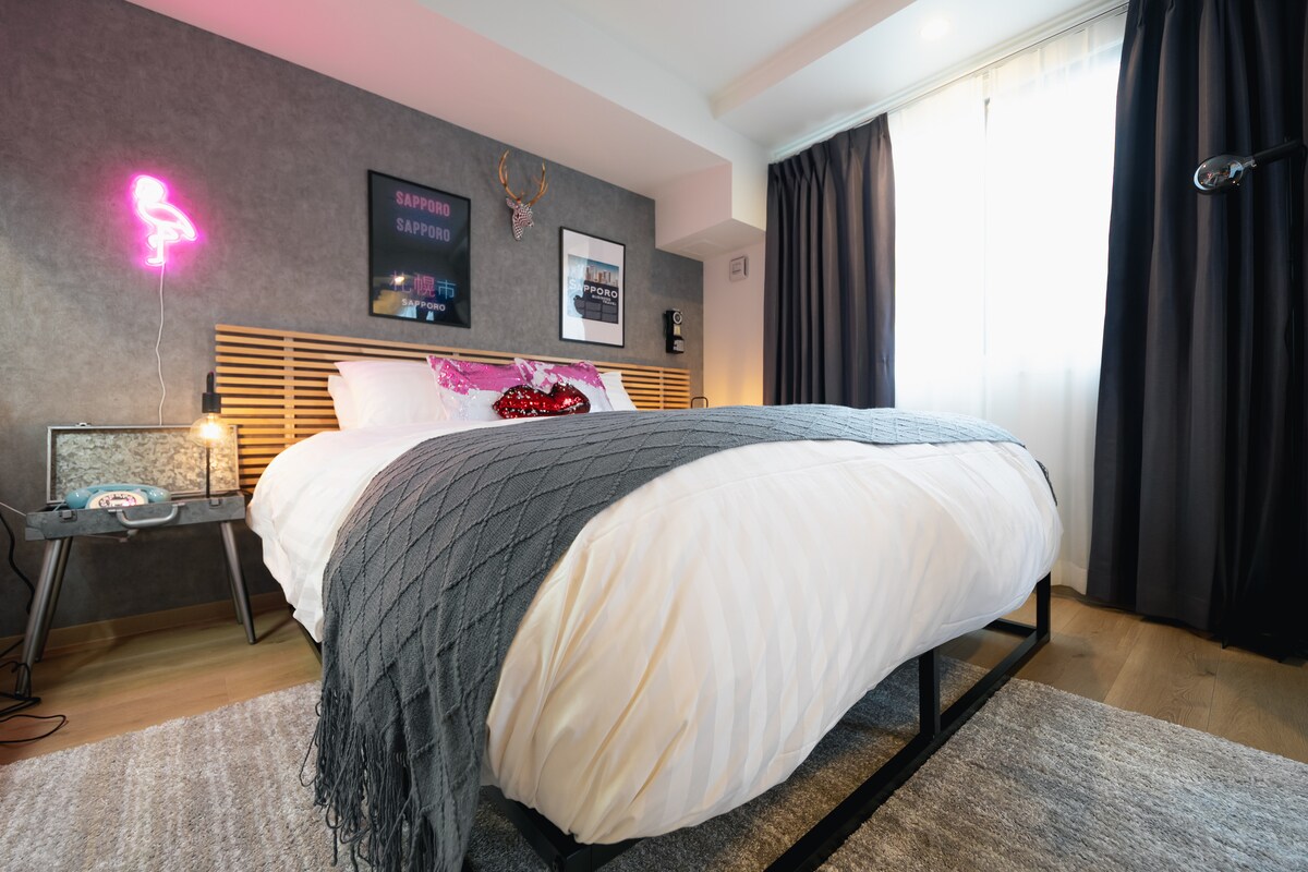 Apartamento 〜 de lujo en el centro de Sapporo, cerca de Odori, Susukino 〜 ・A 150 m de una tienda de conveniencia ・A 500 metros del mercado de Nijo ・A 600 m de la estación de metro Bus Center Mae ・A 800 metros de la estación de metro Susukino ・A 650 metros de Tanukikoji ・A 1,1 km del parque Odori ・Totalmente equipado. ・Diseñado para nómadas digitales cama tamaño・ king, sala de estar, cocina, baño e inodoro ・Cine en casa ・Wifi de alta velocidad gratuito. Escritorio de trabajo y silla de masaje ergonómico. 〜 Envía la foto del pasaporte en línea necesaria para registrarte antes de la llegada〜