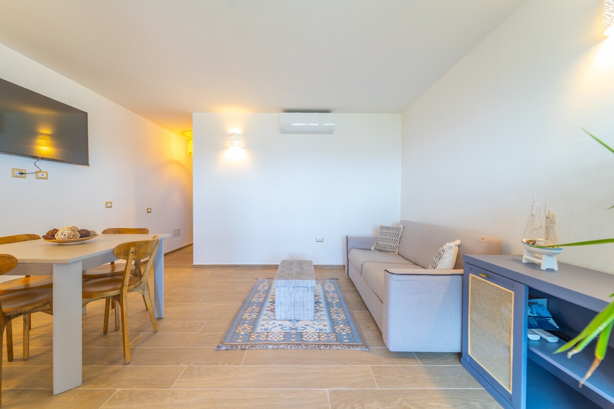 Crea grandes recuerdos en este alojamiento único y familiar. El apartamento recientemente renovado ofrece acceso privado exclusivo a la playa en la hermosa bahía de San Gemiliano con hasta 6 huéspedes. La propiedad se encuentra en un terreno privado con un jardín de más de 6000 metros cuadrados con una puerta de entrada a la playa. Consta de dos dormitorios dobles, una gran sala de estar con cocina y un gran sofá cama doble. Completa la propiedad con un porche cubierto