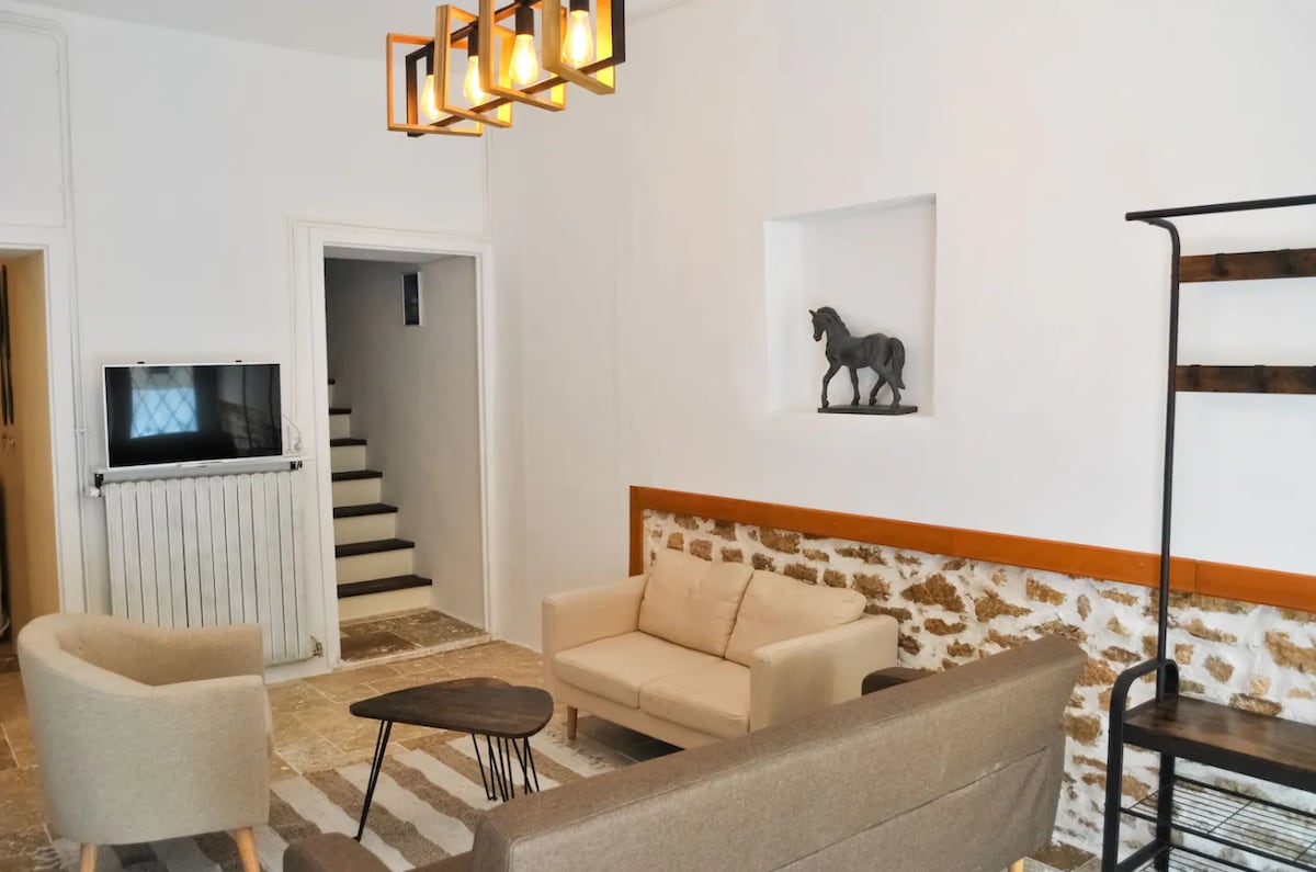 Tour de Gardes du XIVe (1390) moyen-âge du coeur historique : loft de 70 m² situé au rez-de-chaussée-ruelle piétonne Eléments architecturaux d’époque : ogives, porte de passage des gardes et des chevaux Le loft possède tous les éléments du confort moderne : cuisine équipée, baignoire balnéo, TV avec Amazon Pr Situé dans une rue calme du centre historique derrière les remparts, proche parkings (30 m), vous pourrez, sans utilisation de la voiture, parcourir les ruelles de la vieille ville à pied.