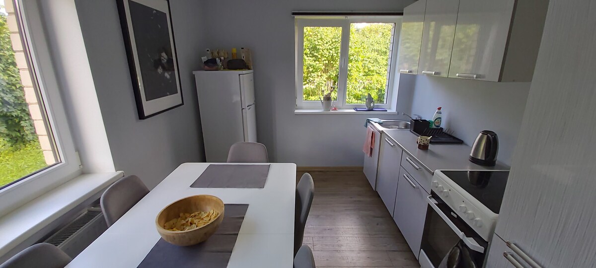 Just a 5-minute walk to the beach and surrounded by pine trees, this cozy apartment in Saulkrasti offers peaceful comfort. Features a king size bed, sofa bed + foldable bed, workspace, fast Wi-Fi, private entrance and a balcony for your morning coffee. Forest walks, beach sunsets and local cafés all in a walking distance. Perfect for couples or a family for quiet escape in nature. Free parking right at the house.