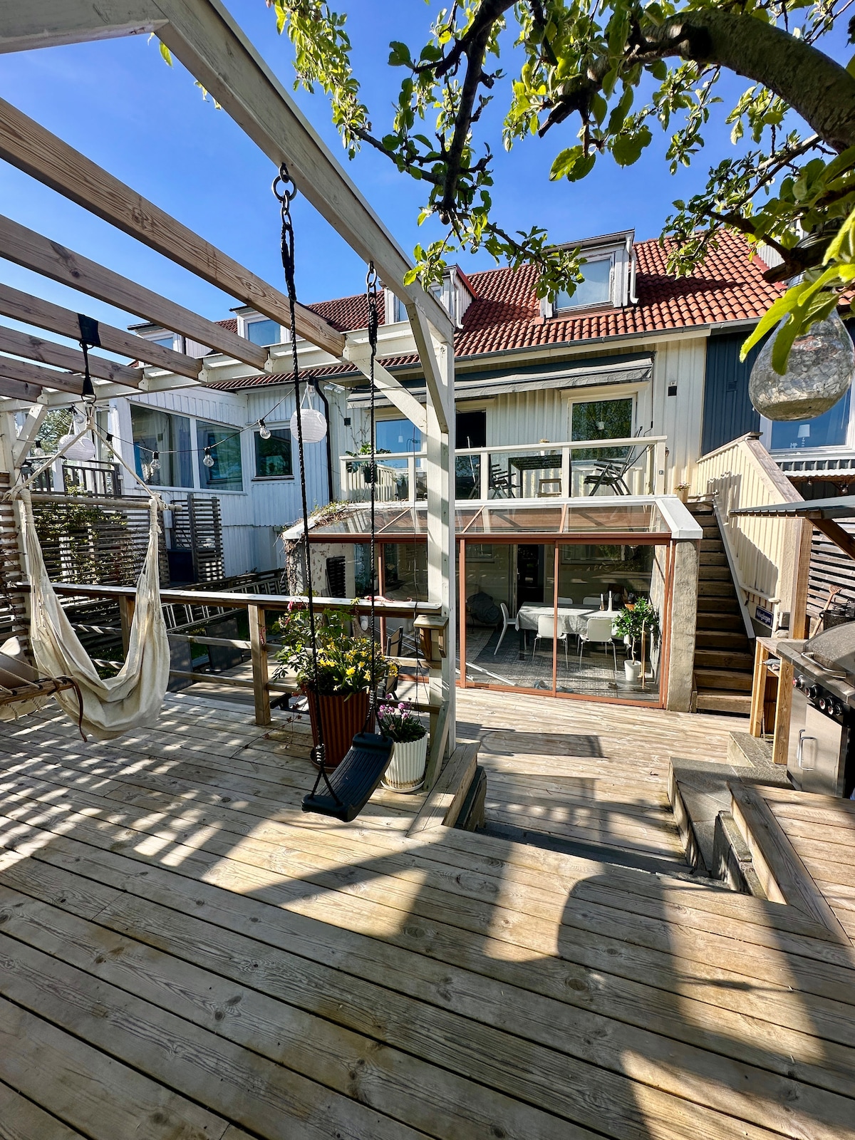 Casa adosada a unos 10 minutos de la ciudad de Gbg. Varios patios con un amplio espacio para noches de barbacoa encantadoras. En el patio encuentra una parrilla de gas Weber. En la terraza de enfrente, hay un gran grupo de salón. Una entrada de garaje para 2 coches. En la zona hay una tienda Ica, una panadería, 3 pizzerías y un bar de sushi. Está a 5 minutos a pie de la parada del autobús que te lleva al centro de la ciudad en unos 10 minutos. ¡Tenemos una cerradura con código que permite el check-in sin personas si lo deseas!