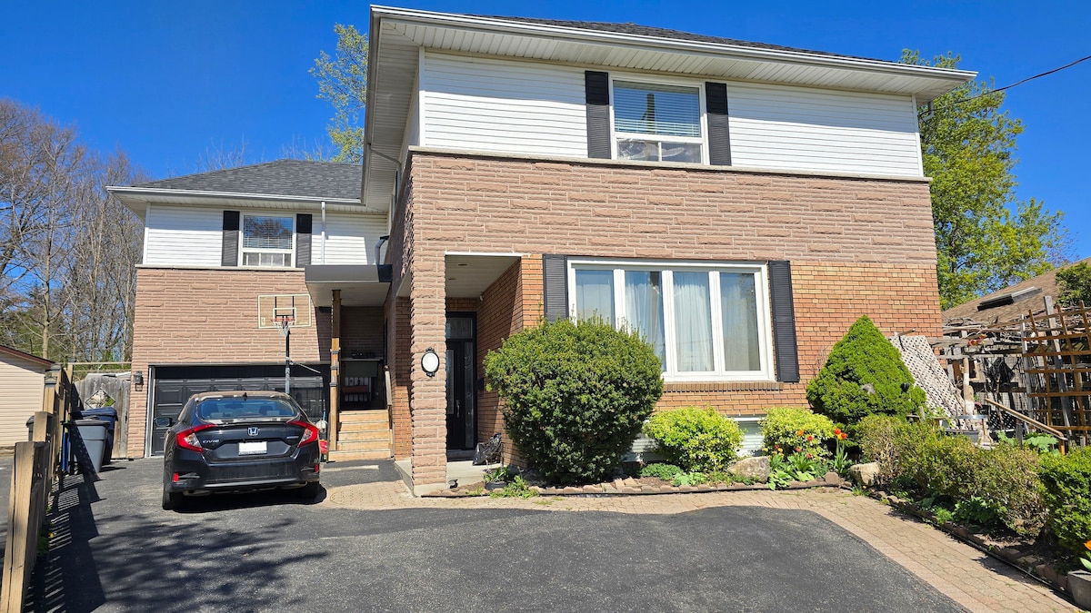 Single/ Multi-Family friendly basement unit- perfect for family reunions and multi-family visits with children. • Private Entrance, Self Check-In, 3 - Lockable Bedrooms and 1.5 Bathrooms • Two Bedrooms w/ Queen, Full & Single Beds • Dedicated Study Desks • Fully Equipped Kitchen w/ Stove and Oven • Includes Microwave, Coffee Maker, & Kettle • 5-Min Drive / 15-Min Walk to Nearby Groceries • 5-Min Drive / 15-Min Walk to GO Train Station • 5-Min Drive to Coin Laundry
