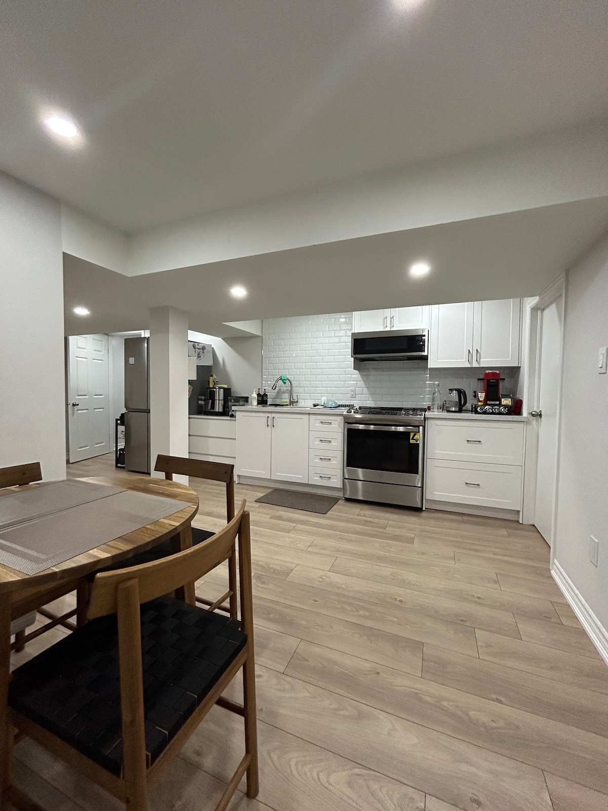 Enjoy a newly built, professionally designed, roomy 1-bedroom basement apartment in East York Toronto. Conveniently located near the Danforth, Woodbine Beach, parks, and trails, the apartment is a short bus/subway ride or a 15 min drive from Downtown Toronto. Self-contained and spacious, it offers a fully equipped kitchen, new laundry facilities, a queen-sized bed, ample storage, and plenty of natural light.