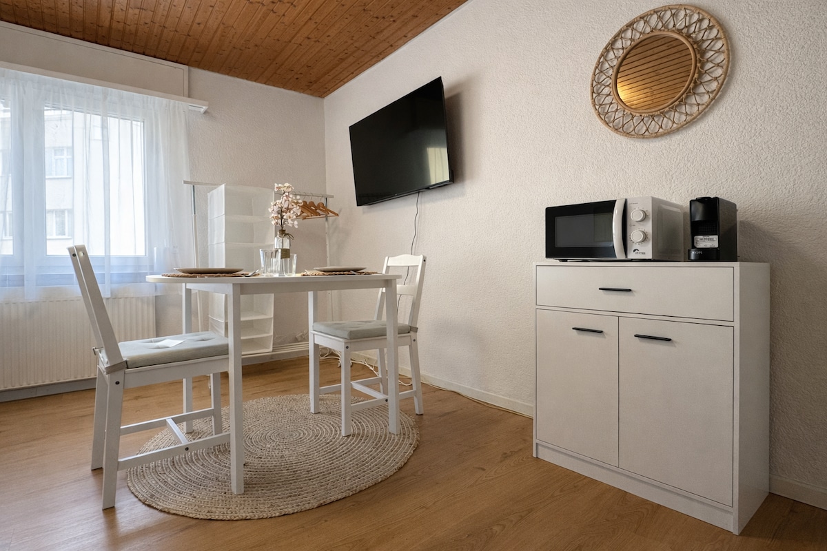 Château Rheinblick: tu hogar en el Rin Sumérgete en la tranquilidad del Château Rheinblick, a solo 50 metros del Rin. En 50 metros cuadrados elegantemente amueblados, te espera un lugar de retiro para tu descanso. La ubicación: a solo 5 minutos a pie de las tiendas, cerca de Schaffhausen y las cataratas del Rin, con excelentes conexiones con Zúrich (30 minutos). Perfecto para escapadas románticas o trabajo productivo: aquí puedes desconectar y recargar energías.