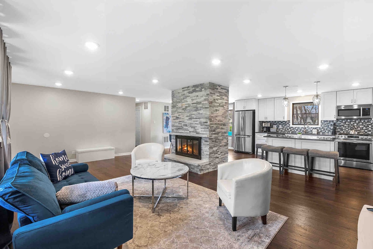 Relájate en este espacioso refugio familiar en Elk Grove Village. Con una cama tamaño king, comodidades modernas y un patio privado, es el lugar perfecto para una escapada relajante o una cómoda base para explorar la zona. La casa está situada cerca del aeropuerto O'hare y del centro comercial Woodfield Mall, además de estar convenientemente ubicada cerca de la intersección de las dos carreteras principales de Chicago: I-90 e I-290, listas para llevarte a tu destino.