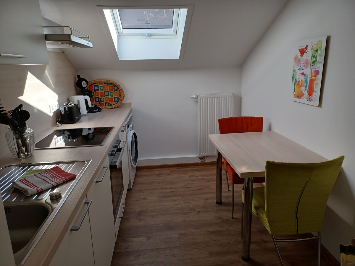 Bienvenido a nuestro encantador apartamento nivelado con su propia entrada a la casa, perfecto para una estancia relajante. La propiedad ofrece todo lo que necesitas: una cocina totalmente equipada, TV por cable, así como wifi gratuito para relajarse por las noches o trabajar desde casa. Un punto culminante especial es el prado adyacente con cenador, ideal para un desayuno acogedor al aire libre. Ya sea para un fin de semana o una estancia más larga, aquí puedes sentirte como en casa.