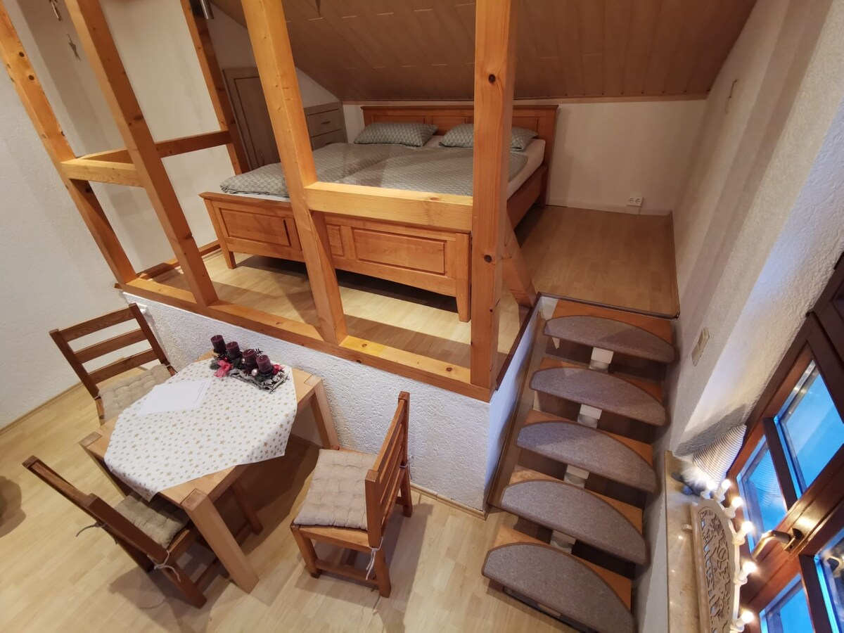 Este apartamento elegantemente amueblado se encuentra directamente en una montaña, rodeado de vegetación, en las afueras de Schwarzenberg. Te esperan paz, naturaleza pura y vistas impresionantes de los Montes Metálicos. Disfruta de tu tiempo en pareja o en familia. El departamento está ubicado en el primer piso superior y también se puede acceder a él mediante un ascensor. El wifi rápido y el estacionamiento son gratuitos. Las toallas y sábanas están incluidas. ¡Disfruta de tu estadía!