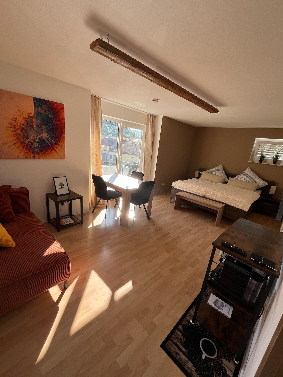 Apartamento tranquilo, 45 m², en casa reformada, construida en 1850, en el centro del casco antiguo histórico de Ladenburg. Acogedor y amueblado para sentirse bien. Hay restaurantes y cafeterías justo delante de la puerta, y el Neckar y la estación de tren están a poca distancia a pie. Heidelberg y Mannheim están a unos 15 minutos en tren. Las bicicletas se pueden guardar en el patio, donde también se puede sentar en verano. Para cargar y descargar, el coche se puede aparcar directamente delante de la casa.