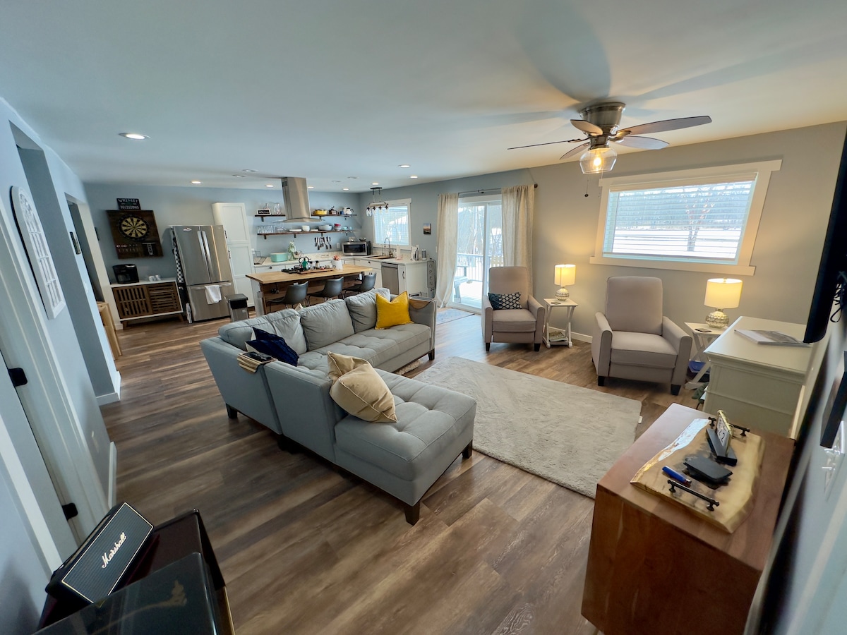 Escape to our beautifully renovated 2BR/1BA riverfront retreat, where comfort meets tranquility. This charming home features a fully equipped kitchen, spacious open-concept layout, radiant floor heating, and laundry. Wake up to peaceful river views, enjoy direct access to the Oneida River and nearby lakes, and unwind in a serene natural setting. Close to hospitals, universities, attractions, and major shopping. Perfect for short getaways or extended stays. Weekly and monthly discounts available.