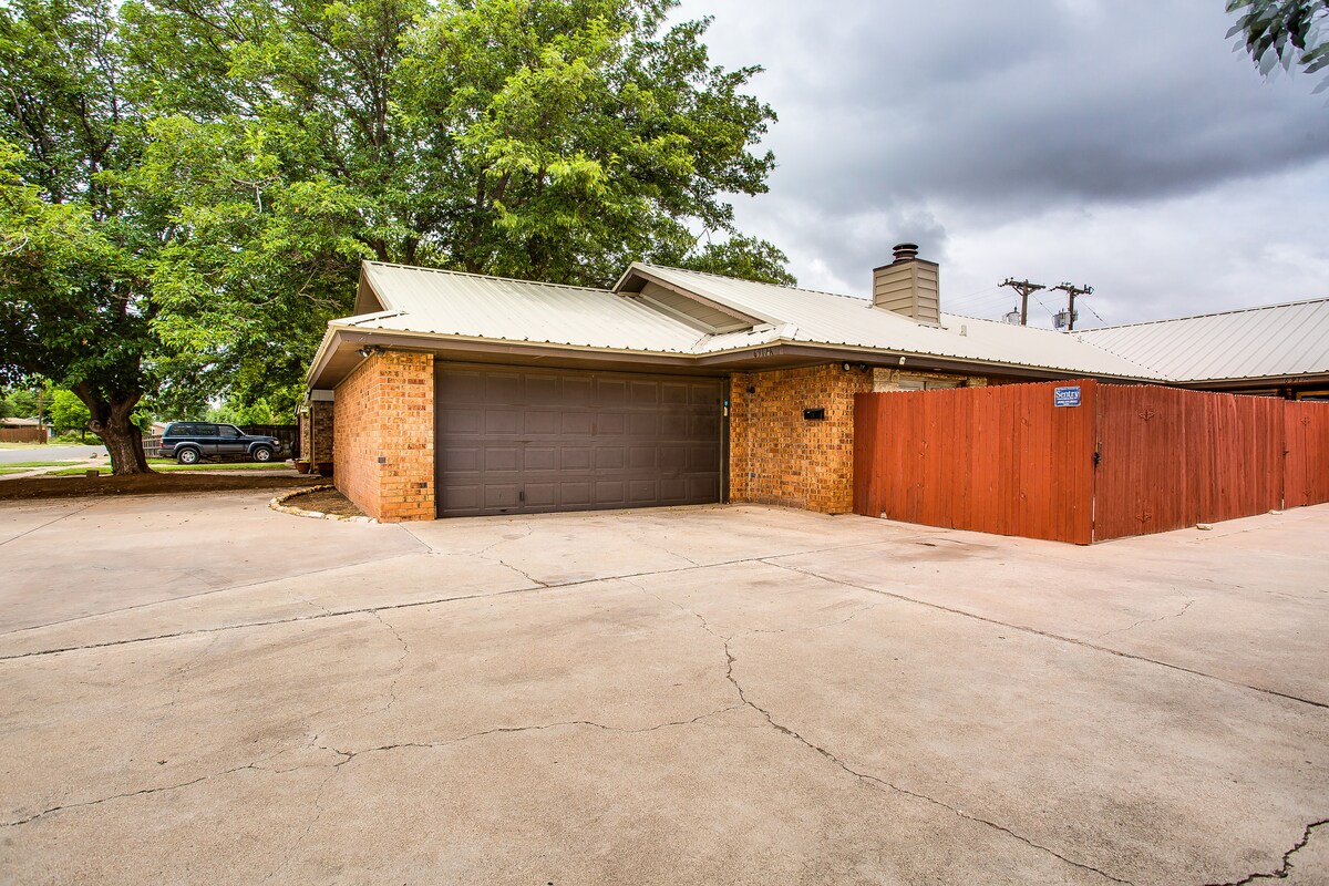 This central located peaceful house has huge trees so you have plenty of shade! Carport, Short drive to Texas tech. Central Lubbock short drive to UMC and covenant hospital for traveling nurses. Great family friendly home and very quiet and peaceful neighborhood. We pride ourself on keeping a clean home! Our beds are super comfy and built for relaxed stays. We are always available for any questions you may have so don’t hesitate to message us!
