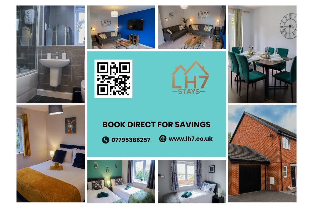 ✉ WEEKLY OFFER! 20% 𝗢𝗙𝗙 ✉ ★Longer Stay ➞ Better Value 🗝 4-Bedroom House 🗝 Sleeps 7 Guests 🗝 Bedroom 1 – Zip-link bed (Double/Twin) 🗝 Bedroom 2 – Zip-link bed (Double/Twin) 🗝 Bedroom 3 – Zip-link bed (Double/Twin) 🗝 Bedroom 4– Single Bed 🗝 1 Ens-Suites, 1 Family Bathroom + separate toilet 🗝Perfect for Long Stays 🗝 Fast WiFi 🗝 Convenient Parking on Large Driveway 🗝 Professionally Cleaned 🗝 Fully Equipped Kitchen ★Perfect for a comfortable week-long retreat!