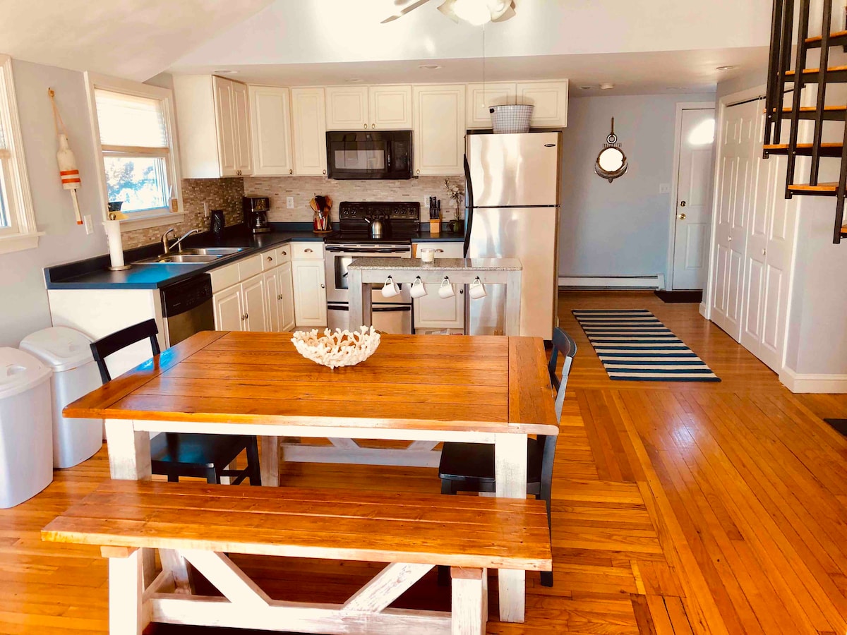 Casa adosada luminosa de 2 niveles con baño remodelado en julio de 2024 y suelos de madera dura remodelados a partir de octubre de 2023. ¡Decorado con buen gusto y equipado con todo lo que necesitas! Cocina con estufa de gas, microondas, tostadora y cafetera Keurig. Dormitorio principal con cama tamaño queen y TV; el segundo dormitorio tiene una cama de matrimonio. Precioso porche con vistas a un bonito patio compartido con sillas, mesa y parrilla de gas. Entrada para 3 coches. ¡Zona tranquila con ubicación céntrica, muy cerca de las playas 🏖 y de la fila de restaurantes de Lower Broadway y del centro de Newport!