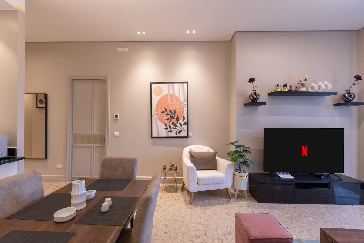 Relax in this modern apartment with a spacious living area, fully equipped kitchen, fast WiFi, TV, and AC throughout. With pool access and a prime New Cairo location near shopping, dining, and entertainment, it’s perfect for families, friends, or business travelers—whether for a short stay or an extended visit.