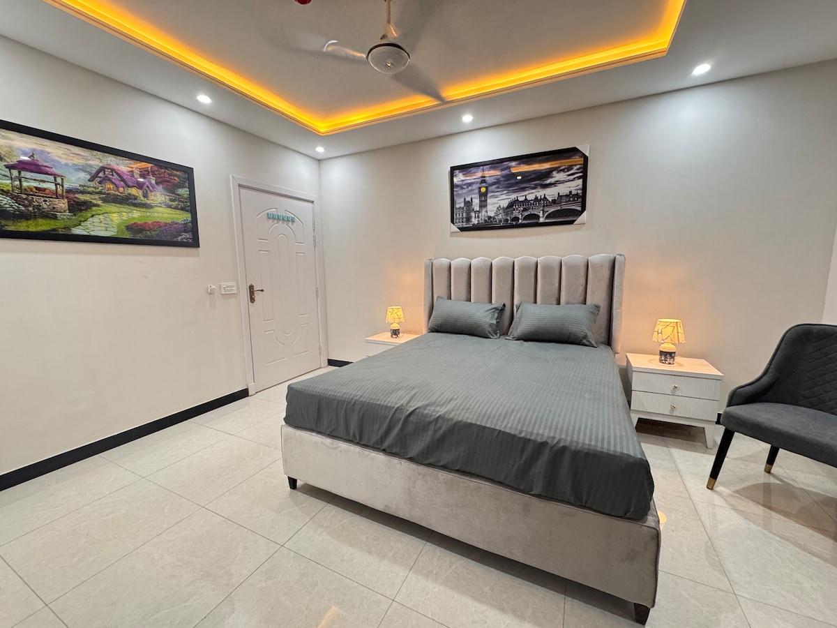 No dudes en reservar o enviarme un mensaje primero. Estaré encantado de responder a cualquier pregunta específica. Está en una ubicación hermosa, en ningún otro lugar de Bahria. Los huéspedes también pueden estacionar sus coches. Sentarse afuera mientras disfrutas de la vista del valle de Bahria por la noche es una ventaja de este lugar. Un alojamiento acogedor. Hay entregas a domicilio disponibles. Cine Gold Plex, centros comerciales, Giga Mall y PSO están a 10-15 minutos en coche. El Hospital Internacional de Bahria está a solo 5 minutos. Ideal para familias y viaj de negocios.