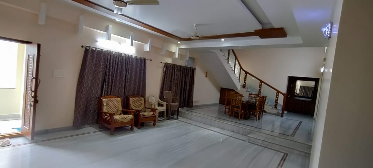 ● Alojamiento independiente en el primer piso con 2 habitaciones y cocina en el centro de Hyderabad, tranquilo (ascensor disponible) ● Zona de estar luminosa, sofá y TV para estancias relajadas ● Cocina pequeña con inducción, nevera y utensilios ligeros para estancias largas. ● Habitaciones acogedoras con cama, escritorio y silla, ideales para trabajar desde casa y para los exámenes ● Perfecto para profesionales, aspirantes a exámenes, trabajadores remotos. ● Acceso privilegiado: Charminar a 20 minutos, Ramoji Film City a 45 minutos, oficinas cercanas ● Cafés, restaurantes, supermercados a pocos pasos ● Coorganizado profesionalmente por The Homestay Academy