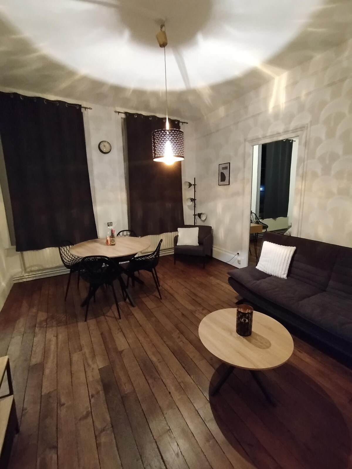 Venga a descubrir este magnífico estudio cálido totalmente renovado de 33 m2 amueblado con todas las comodidades con: -1 cocina equipada - 1 pequeña sala de estar -1 cama de 140 x 190 (sábanas incluidas) -1 cuarto de baño (toallas incluidas) -Secador de pelo - un microondas - Horno - Placa eléctrica - Cafetera El estudio se encuentra en el centro de Sedan en una calle muy tranquila . El castillo se encuentra a 500 metros. Estación de tren SNCF a 1 km. Aparcamiento gratuito cercano Posibilidad de estacionar bicicletas en el vestíbulo de entrada que es seguro