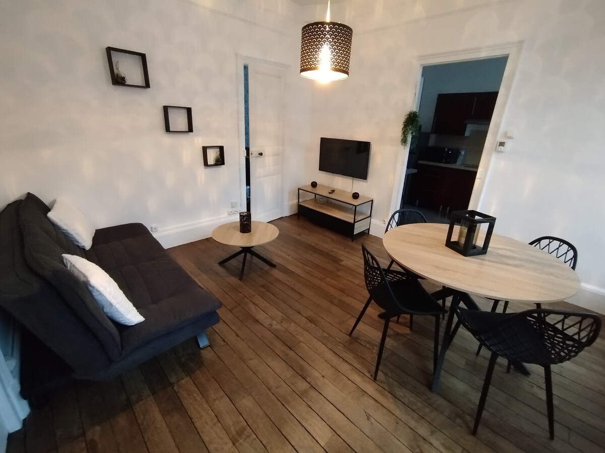Venga a descubrir este magnífico estudio cálido totalmente renovado de 33 m2 amueblado con todas las comodidades con: -1 cocina equipada - 1 pequeña sala de estar -1 cama de 140 x 190 (sábanas incluidas) -1 cuarto de baño (toallas incluidas) -Secador de pelo - un microondas - Horno - Placa eléctrica - Cafetera El estudio se encuentra en el centro de Sedan en una calle muy tranquila . El castillo se encuentra a 500 metros. Estación de tren SNCF a 1 km. Aparcamiento gratuito cercano Posibilidad de estacionar bicicletas en el vestíbulo de entrada que es seguro